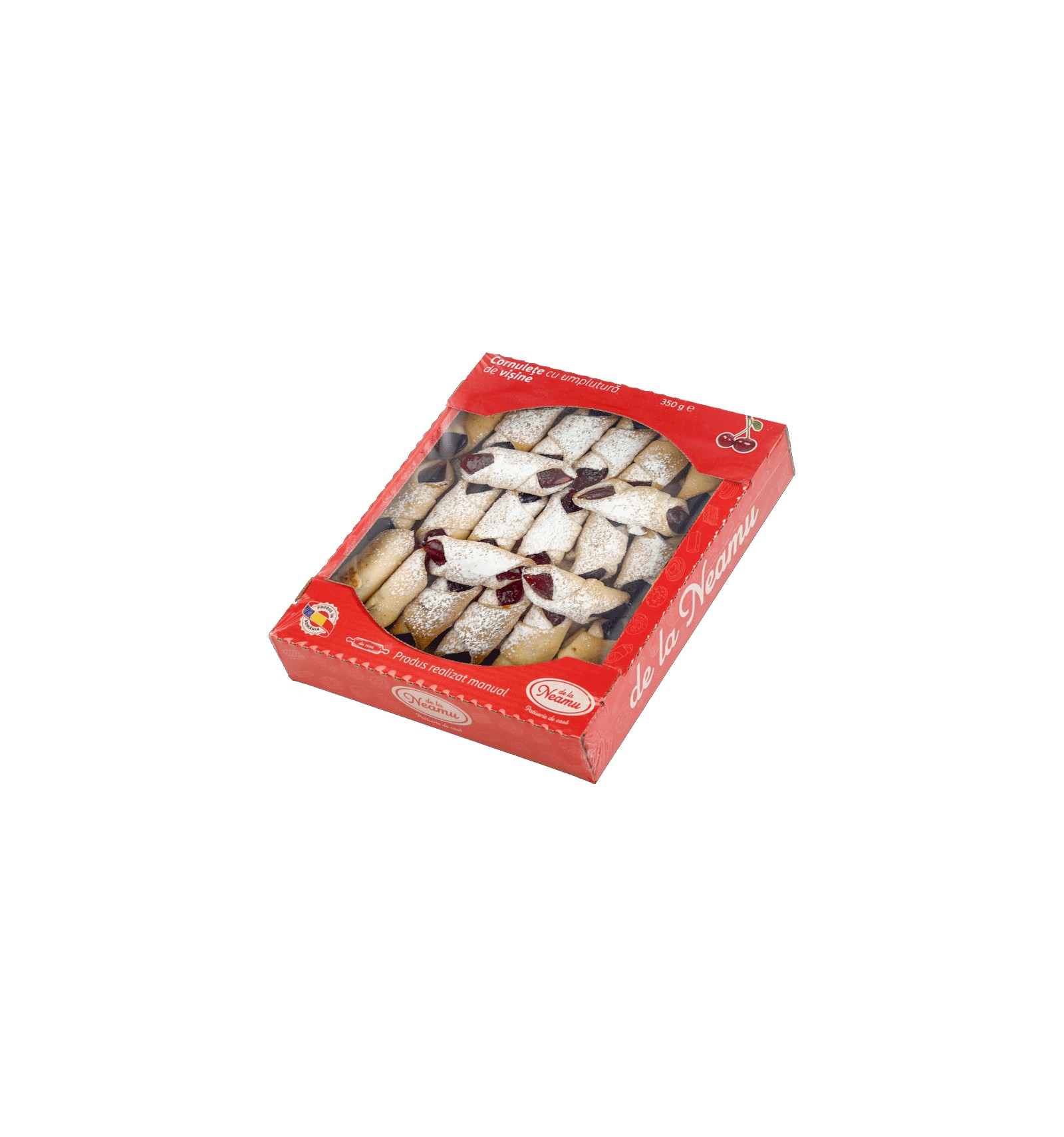 Ingredientes: harina blanca de trigo, grasa vegetal, mermelada de cereza, azúcar, sal, vinagre, agua.