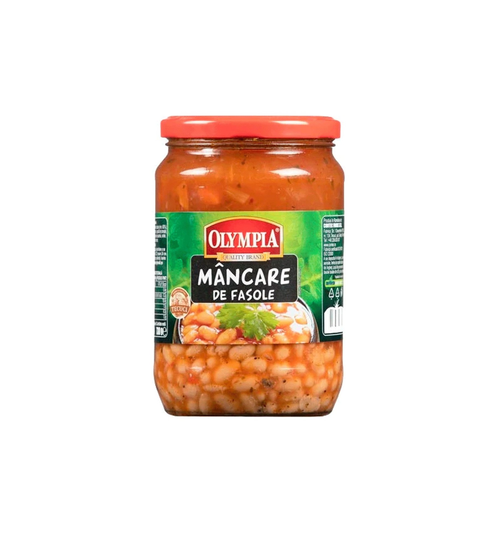 Ingredientes: judías (mín. 60%), agua, cebolla, zanahorias, pasta de tomate, aceite vegetal de girasol, pimientos, sal, azúcar, especias.