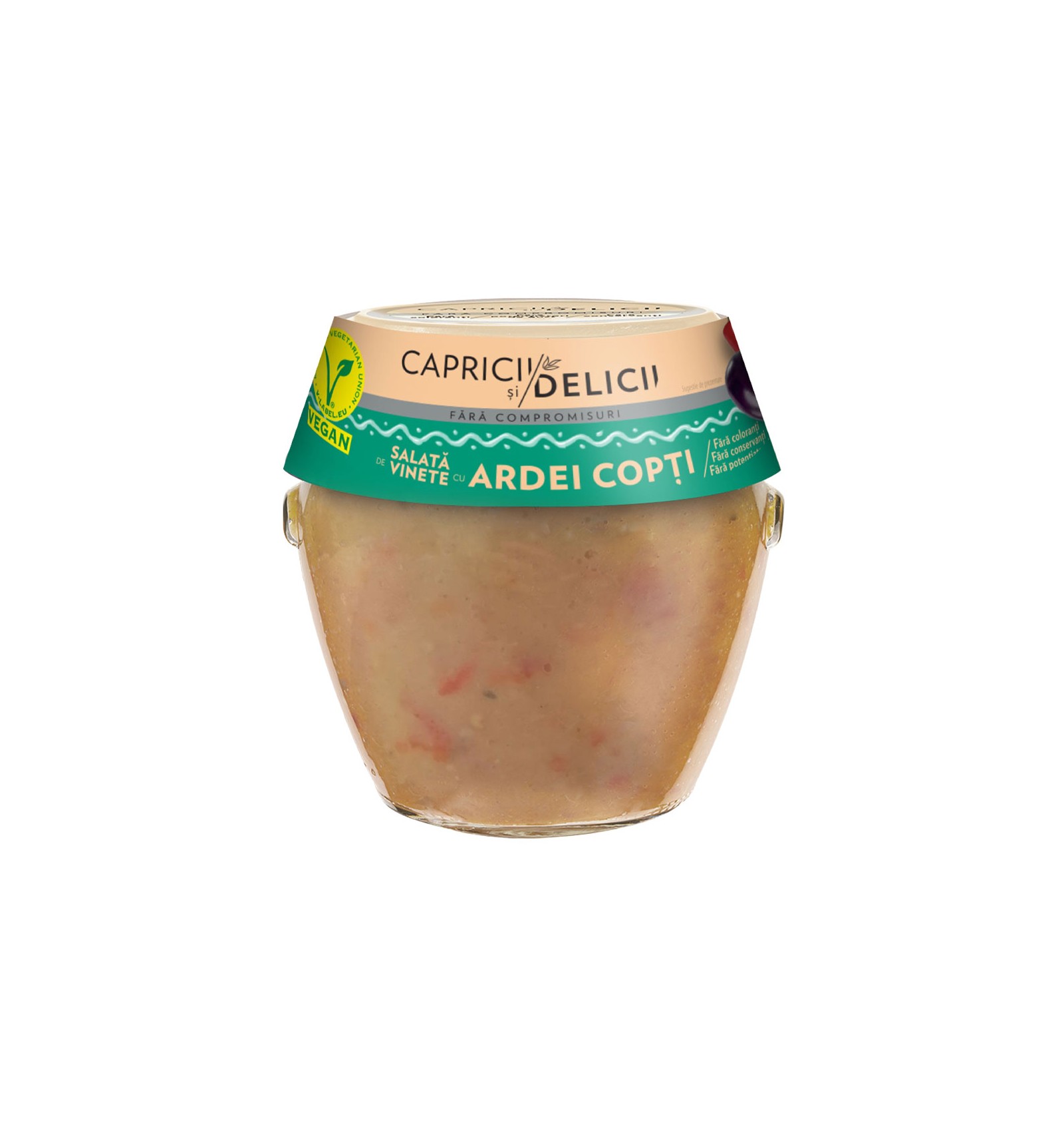 Ingredientes: berenjenas asadas, pimientos rojos asados 25%, cebolla, aceite vegetal de girasol, sal yodada, antioxidantes: ácido ascórbico.