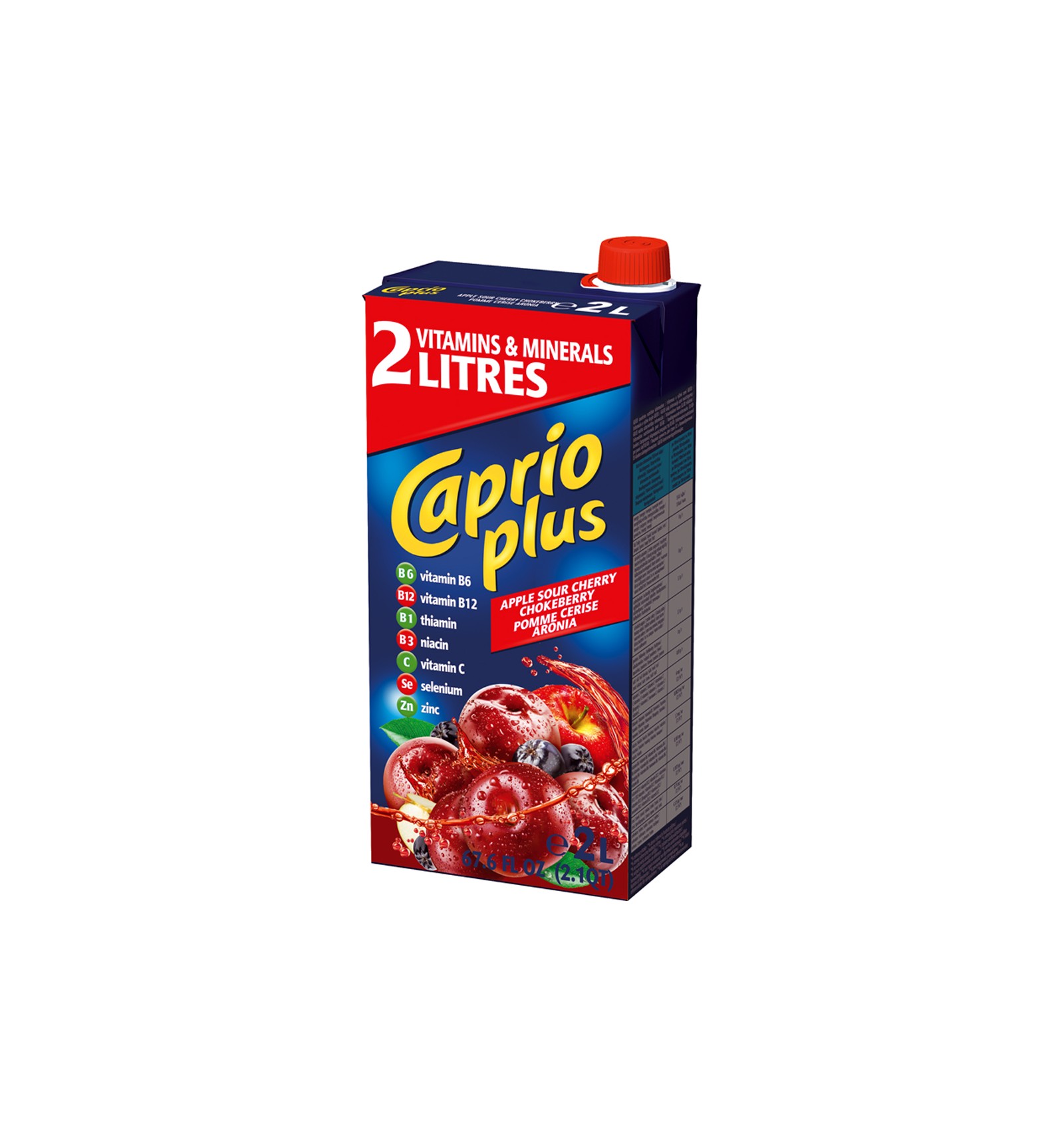 Ingredientes: agua, azúcar, zumo de concentrado de manzana 2%, guinda 1% y arándano 1%, reguladores de la acidez: ácido cítrico y citrato de sodio, vitaminas: C, tiamina, niacina, B6, B12, zinc, selenio, estabilizador: carboximetilcelulosa, colorante: concentrado de zanahoria negra, edulcorantes: sucralosa y acesulfame K, aroma.
