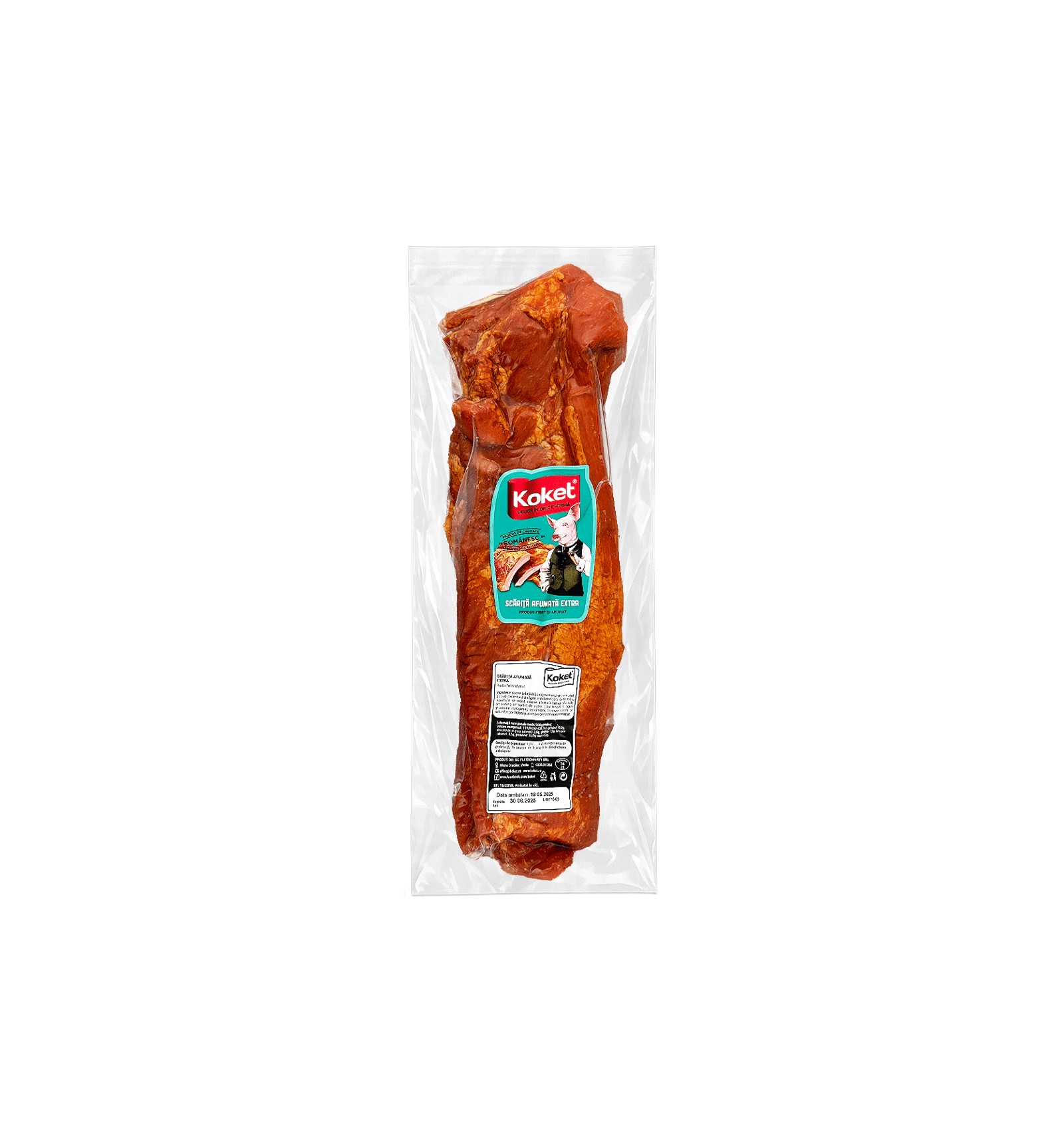 Ingredientes: costillas de cerdo, sal, agua, proteína concentrada de leche, estabilizantes (difosfato de sodio, tripolifosfato de sodio), azúcares (dextrosa, lactosa, glucosa), antioxidantes (eritorbato de sodio, citrato trisódico), agente gelificante (carragenano), especias, conservador (nitrito de sodio). Contiene lactosa y puede contener trazas de soja y mostaza.
