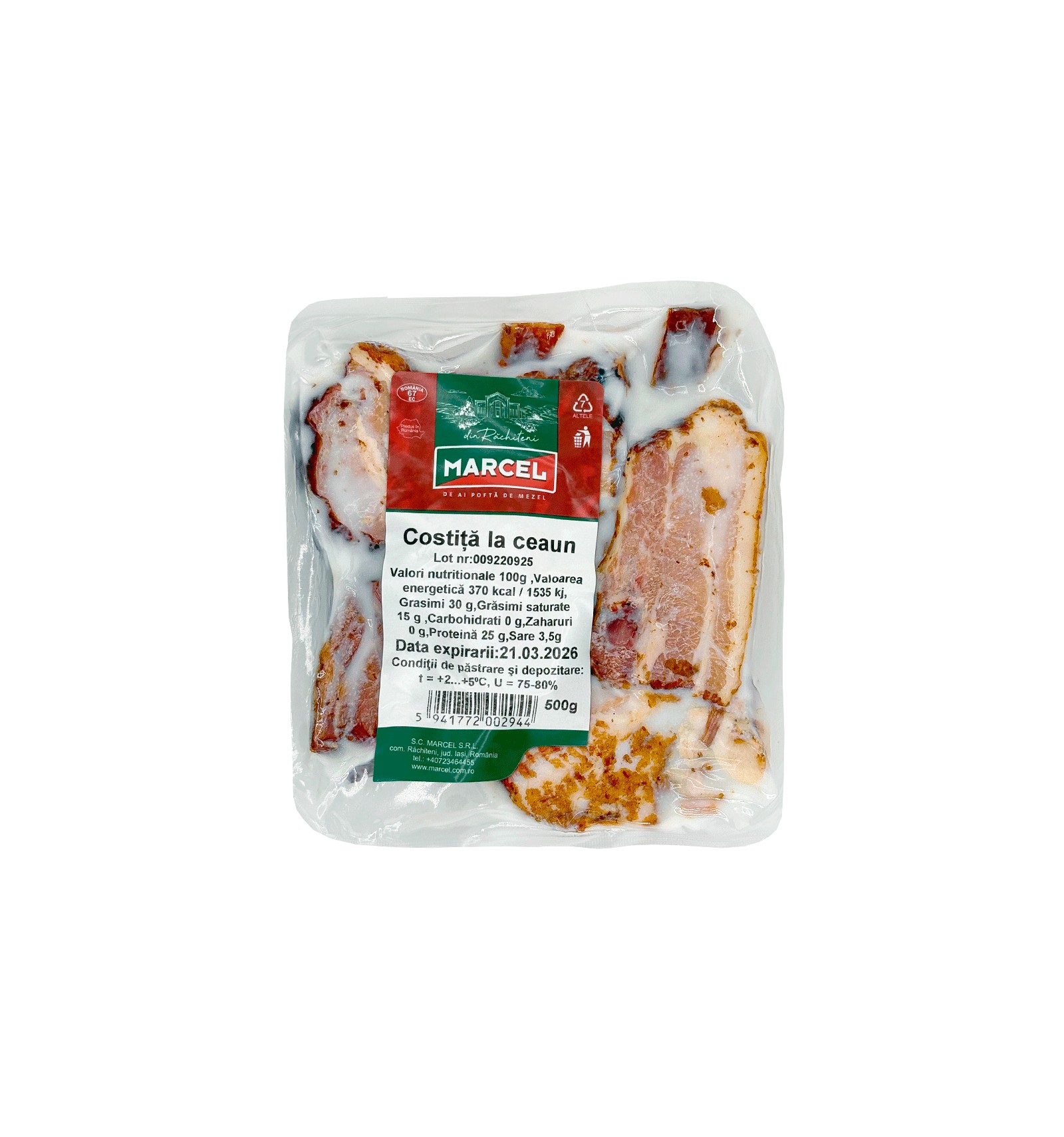 Ingredientes: costilla de cerdo ahumada 86%, sal, conservante: nitrito de sodio, manteca de cerdo 14%. Puede contener trazas de SOJA, MOSTAZA, LECHE, GLUTEN.