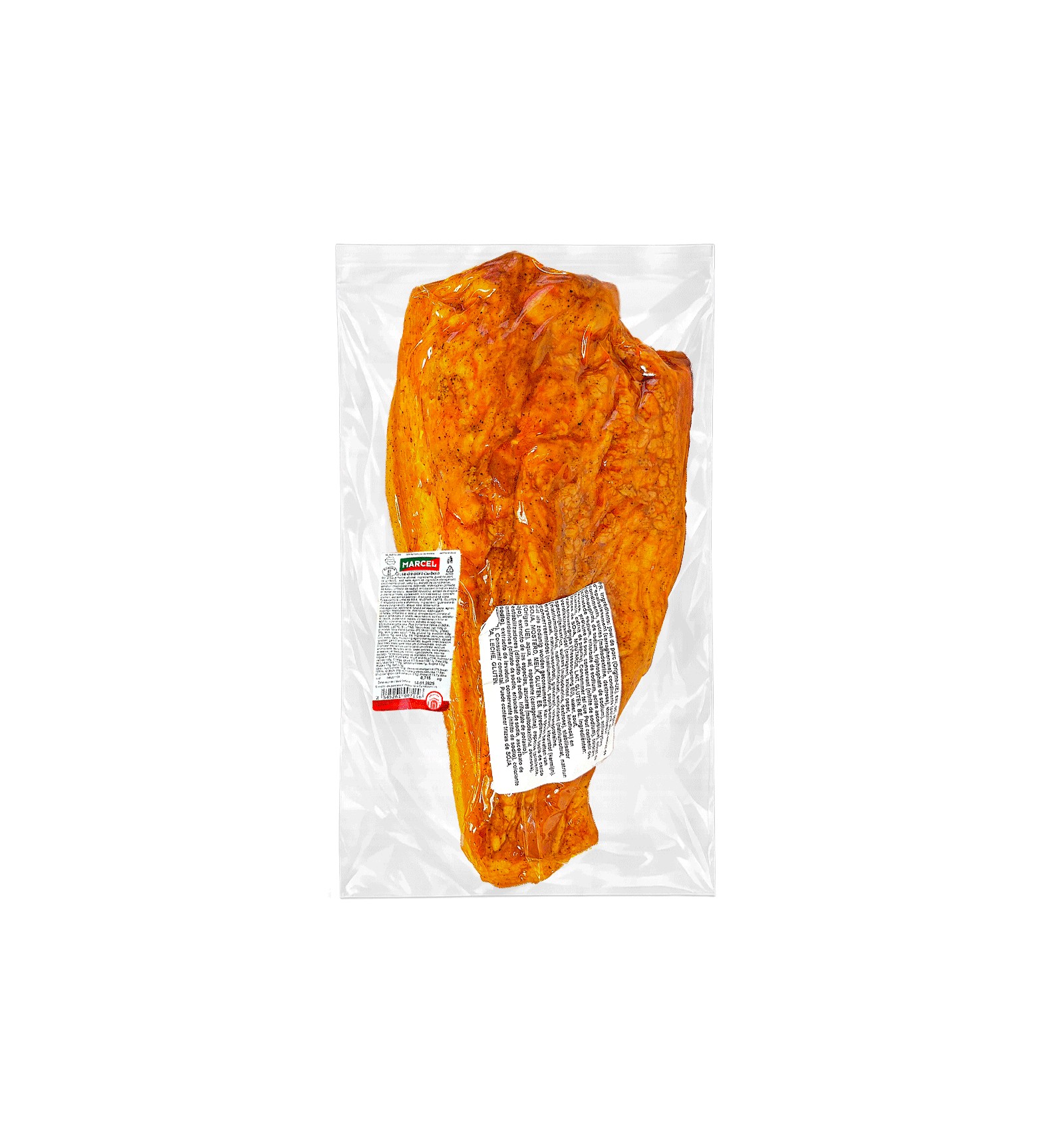 Ingredientes: corteza de cerdo (origen UE), agua, sal, espesante (carragenina), especias (pimienta, ajo), extracto de especias, azúcares (maltodextrina, dextrosa), estabilizadores (difosfato de sodio, trifosfato de sodio), antioxidantes (citrato de sodio, eritorbato de sodio, ascorbato de sodio), extracto de levadura, proteína animal, conservante (nitrito de sodio), colorantes (carmín, extracto de pimentón). Puede contener trazas de soja, mostaza, leche, gluten.