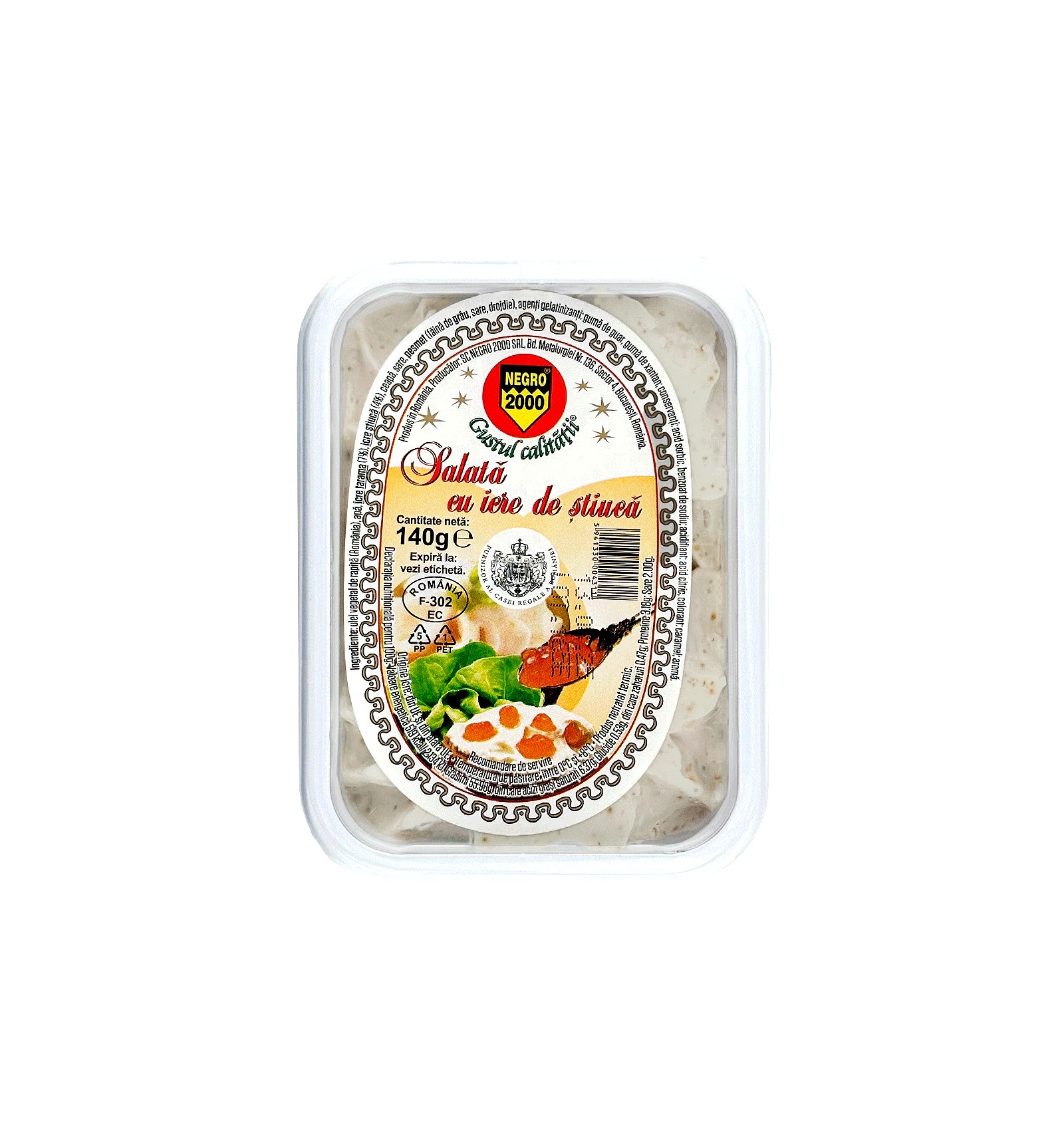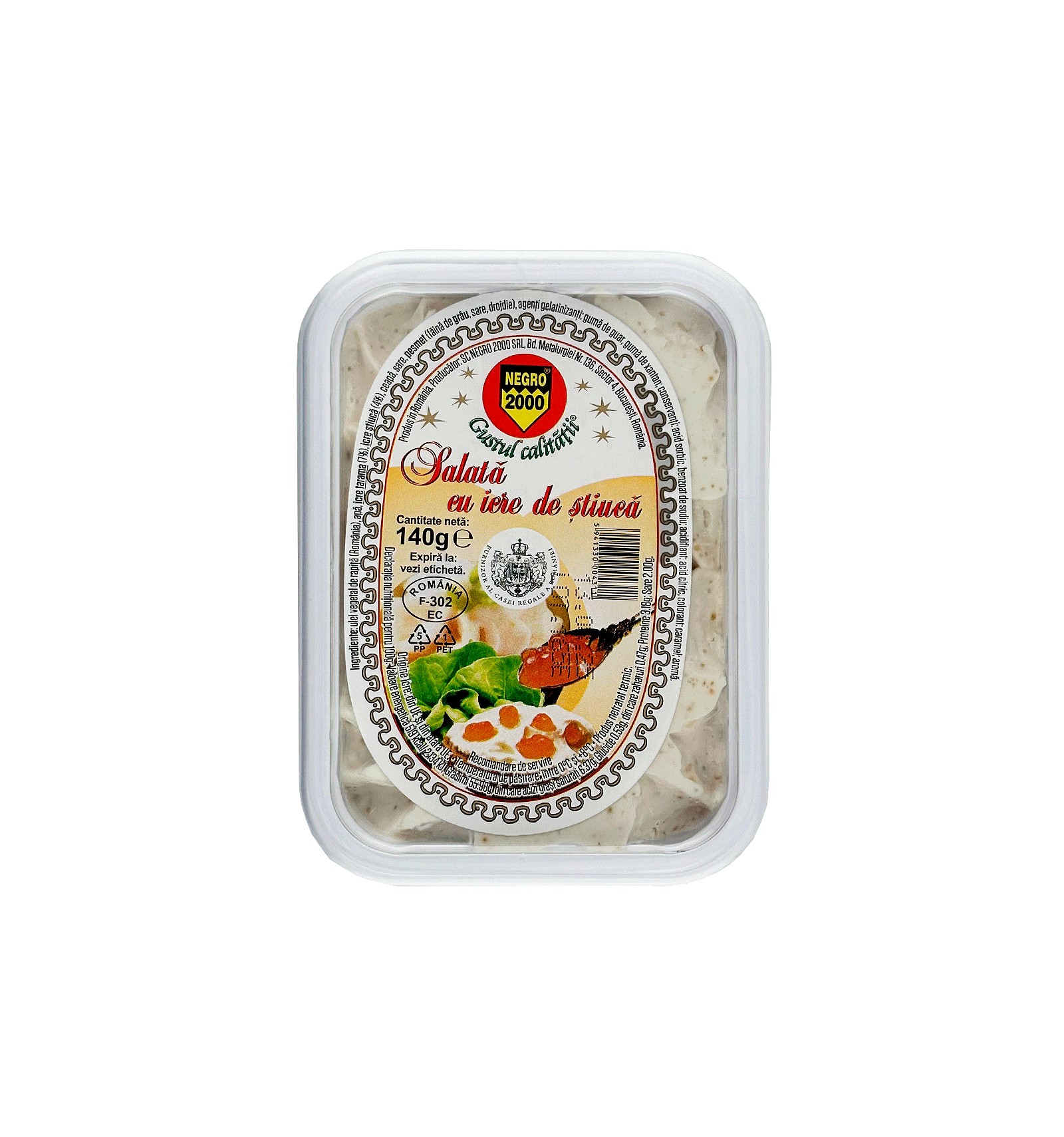 Ingredientes: Aceite vegetal de colza, agua, huevas de tarama (7%), huevas de lucio (4%), cebolla, sal, pan rallado (harina de trigo, sal, levadura), agentes gelificantes (goma guar, goma xantana), conservantes (ácido sórbico, benzoato de sodio), acidificante (ácido cítrico), colorante (caramelo), aroma.