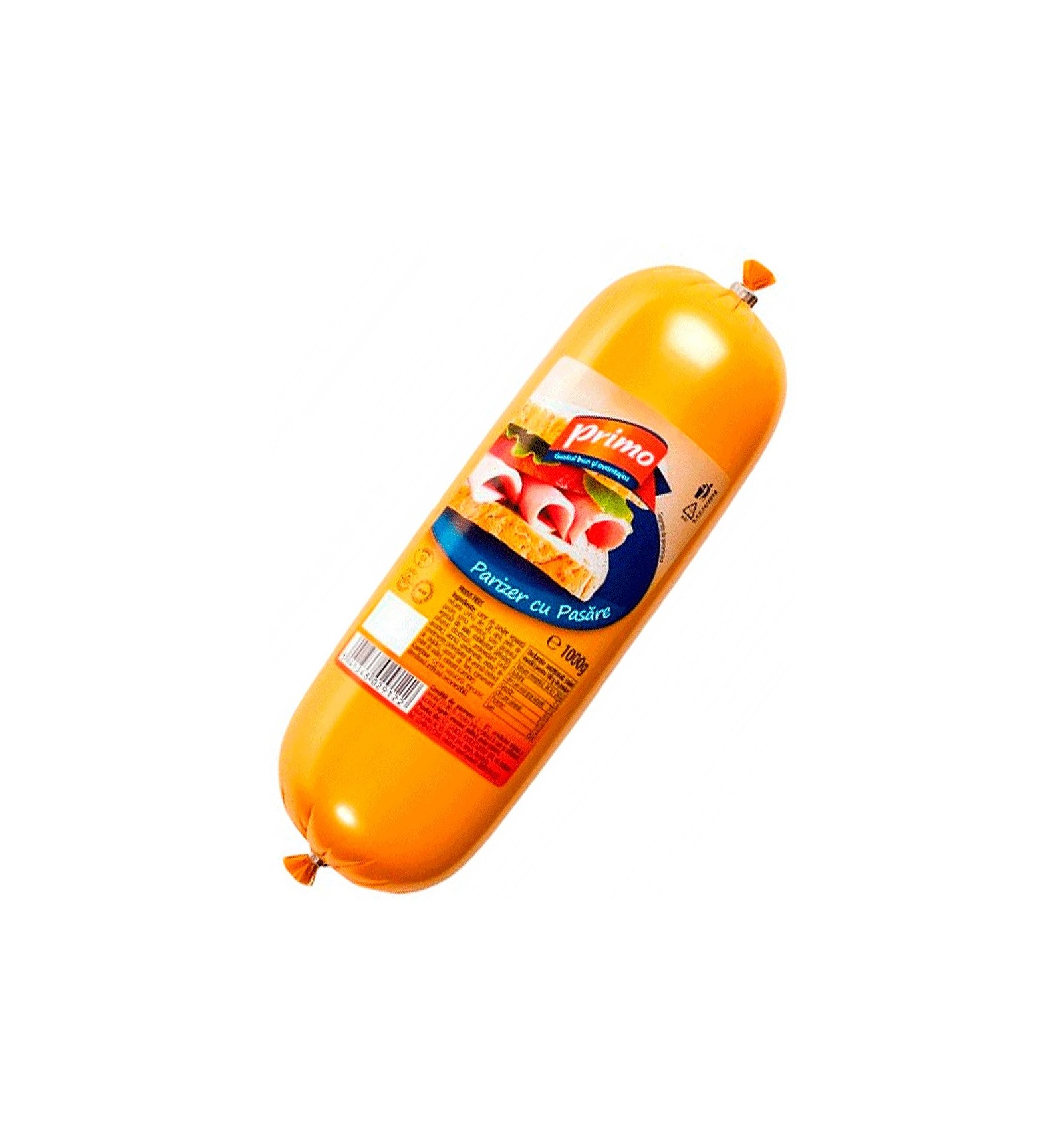 Ingrediente: carne de ave separada mecánicamente (34%) de la UE, agua, piel de ave, corteza, almidón, sal, proteína vegetal de soja, estabilizantes (difosfatos), azúcares (dextrosa), antioxidante (ácido ascórbico), aroma, especias, extracto de especias, potenciador de sabor (extracto de levadura), aroma de humo, conservante (nitrito de sodio), colorante (carmín).