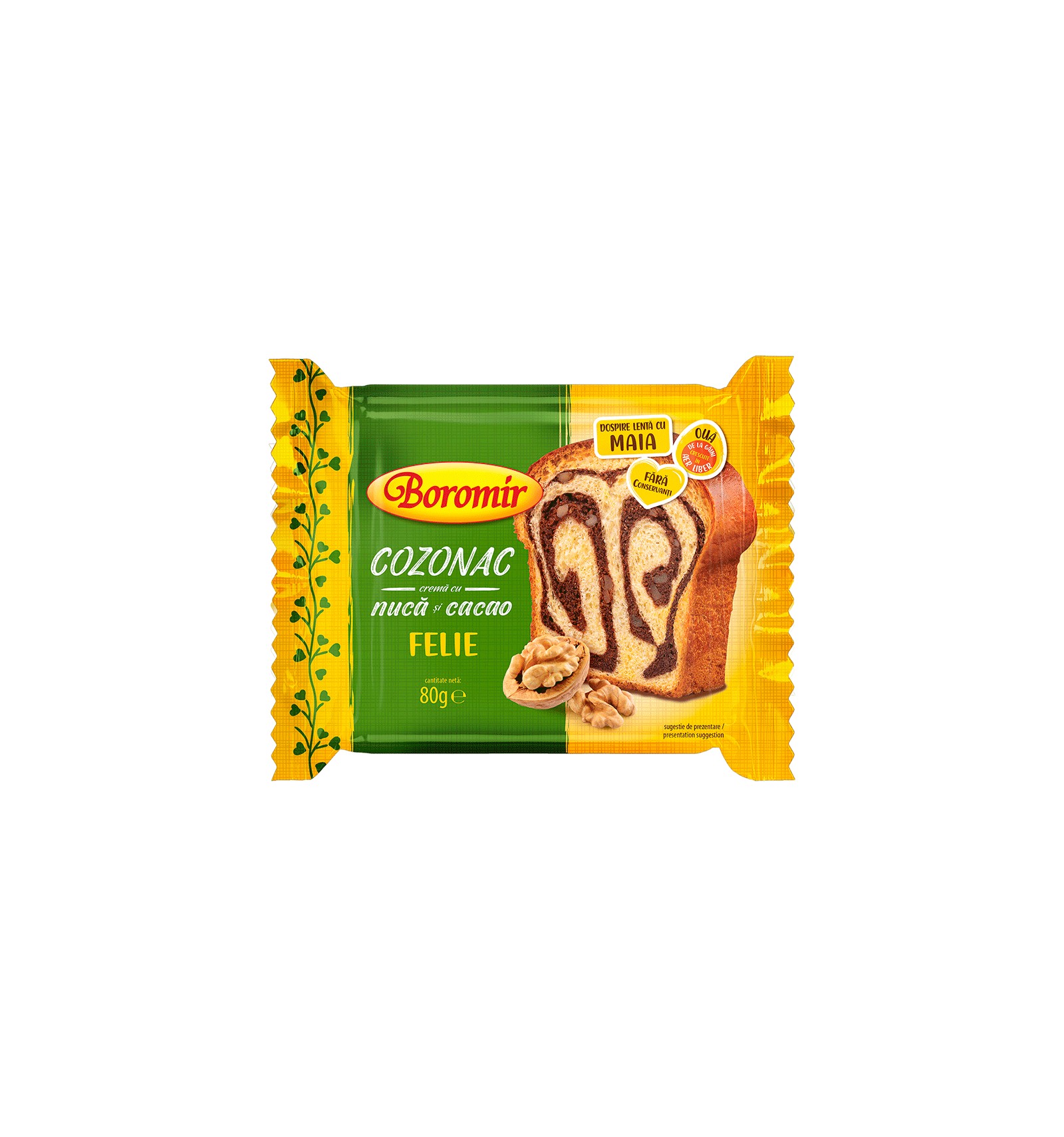 Ingredientes: harina blanca de TRIGO, HUEVOS de gallinas criadas al aire libre 15%, azúcar, masa madre / levadura natural 9% (harina blanca de TRIGO, agua), NUEZ 8%, aceites vegetales (palma, girasol, colza), agua, mantequilla, LECHE entera en polvo, cacao en polvo desgrasado 1,0%, emulsionantes: mono y diglicéridos de los ácidos grasos y lecitina de SOJA, jarabe de glucosa-fructosa, alcohol etílico, levadura, sal yodada, aromas. El producto puede contener trazas de NUECES.