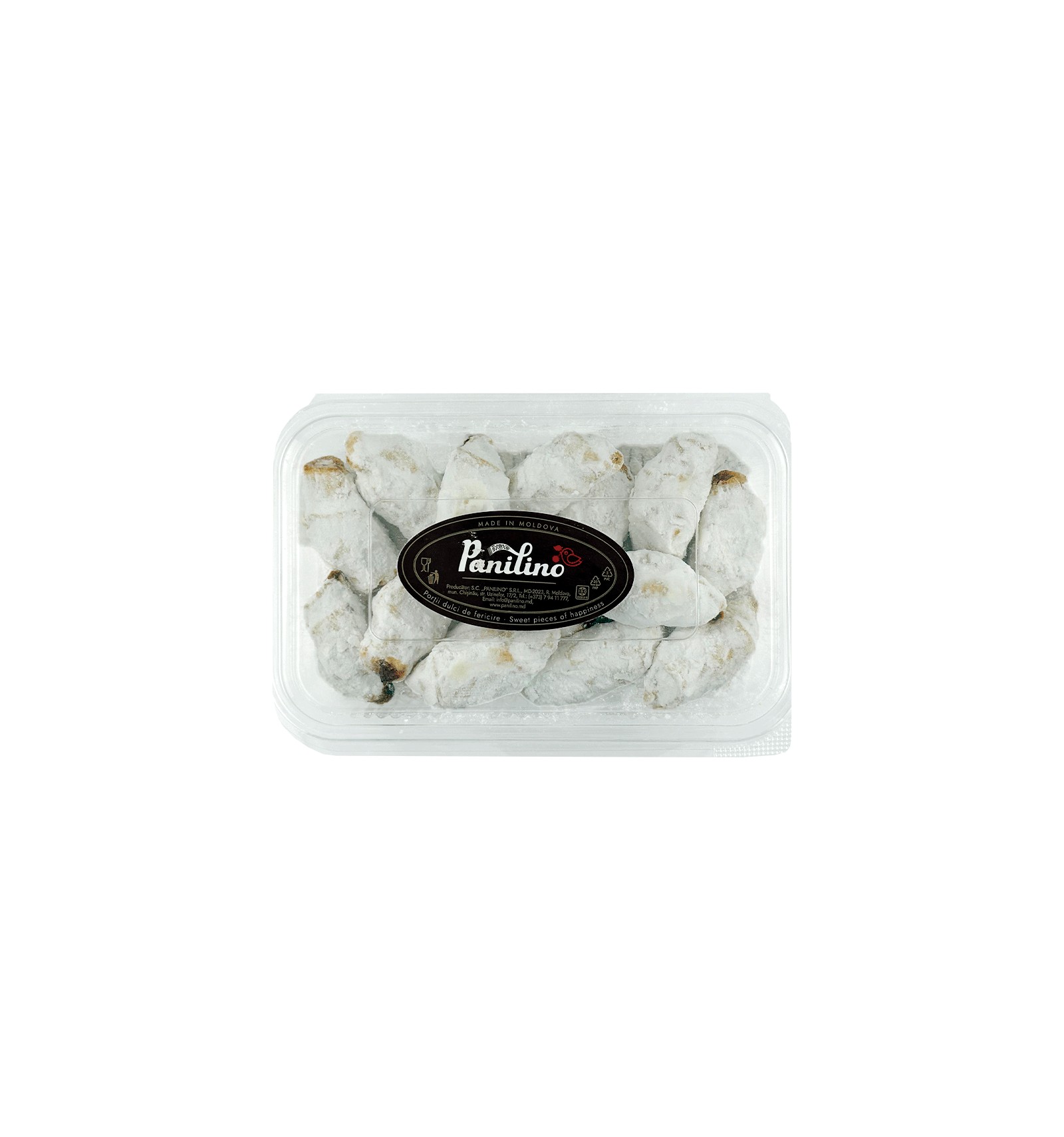 Ingredientes: harina de TRIGO, margarina vegetal 80% (aceites vegetales: palma, girasol, colza en proporciones variables; agua; emulsionante: mono y diglicéridos de ácidos grasos; sal 0,2%; conservante: ácido sórbico; aroma; acidulante: ácido cítrico), relleno termoestable de manzana con aroma de cereza 23% (azúcar cristal, pasta de manzana, jarabe de glucosa, agua potable; aditivos alimentarios: agente espesante: pectina, alginato de sodio; antioxidantes: ácido cítrico, citratos de calcio; conservante: sorbato de potasio; colorante: carmín; aromatizante (aroma de cereza); agua potable), azúcar glas, gasificante: bicarbonato de amonio, sal alimentaria, conservante: sorbato de potasio, aroma natural de vainilla. El producto contiene GLUTEN. Puede contener trazas de CACAHUETES, ANACARDOS, HUEVO, SOJA y LECHE.