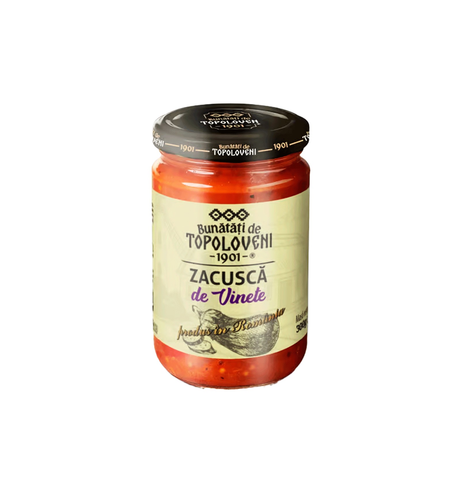 Ingredientes: Berenjenas asadas (mínimo 50%), tomates, pimientos asados (mín. 12%), cebolla, zanahorias, aceite de girasol, pasta de tomate, sal yodada, especias.