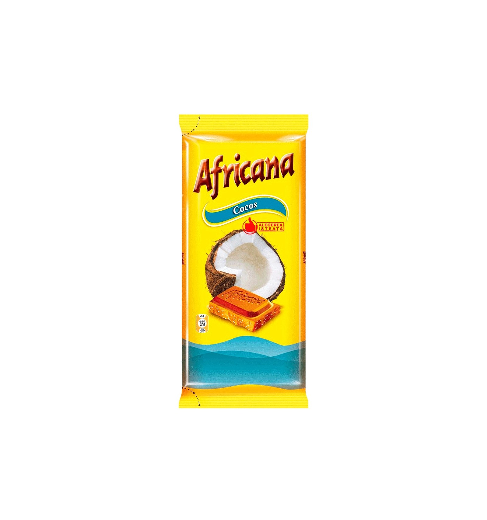 Ingrediente: azúcar, grasa vegetal (palma, Shea), suero en polvo (de leche), copos de coco (10%), cacao con bajo contenido de grasa, emulsionantes (lecitina de soja, E476, lecitina de girasol), leche en polvo desnatada (0.9%), aroma.