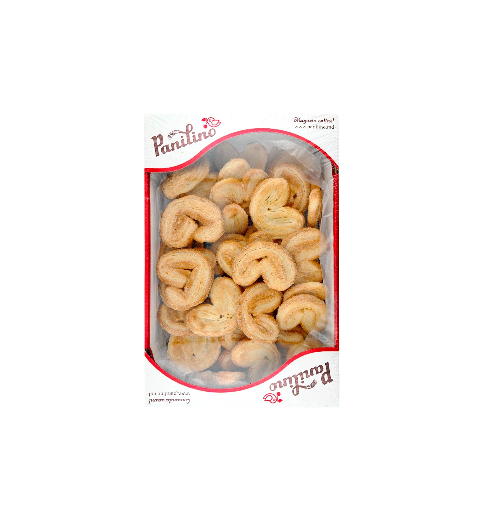 Ingredientes: Harina de TRIGO, margarina vegetal 80% (aceites vegetales: de palma, girasol y colza en proporciones variables, agua, emulsionante: mono- y diglicéridos de ácidos grasos, sal alimentaria, conservante: ácido sórbico, aroma, corrector de acidez: ácido cítrico), azúcar, mejorante (harina de TRIGO, emulsionante (ésteres de ácidos mono- y diacetiltartáricos con mono- y diglicéridos de ácidos grasos, ácido ascórbico, enzimas), aroma de mantequilla, ácido cítrico). Contiene GLUTEN. Puede contener trazas de frutos de cáscara y sésamo.