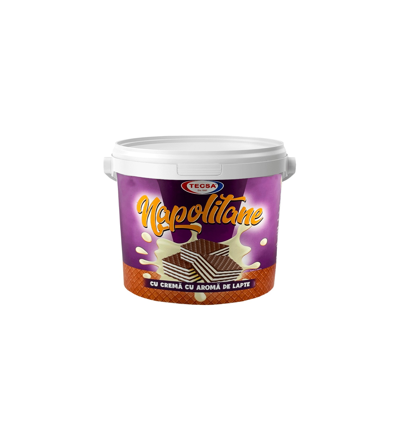 Ingredientes: harina de trigo (origen UE), grasa vegetal no hidrogenada (aceite de palma), almidón, cacao, emulsionante (lecitina de soja), agentes leudantes (carbonatos de amonio, carbonatos de sodio, difosfatos), aromas, sal yodada. Contiene 70% crema.