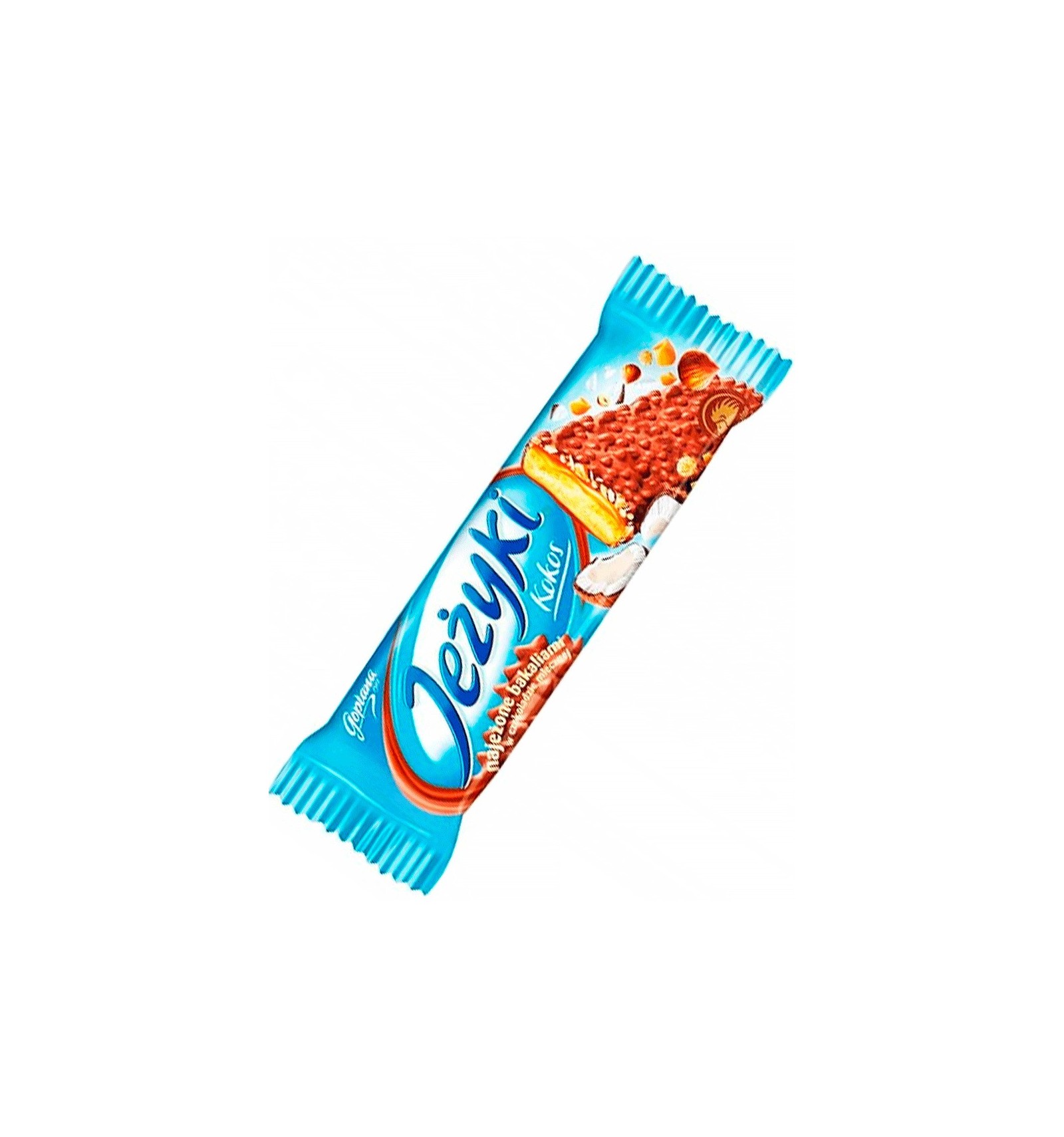 Ingredientes: Chocolate con leche 34,3% [azúcar, manteca de cacao, leche entera en polvo, pasta de cacao, grasas vegetales (aceite de palma, karité), en proporciones variables, suero en polvo (de leche), emulsionantes: lecitina (de soya) y poliricinoleato de poliglicerol, aroma], harina de trigo, azúcar, jarabe de azúcar invertido, jarabe de glucosa, grasa de palma, coco desecado 4,8%, avellanas 3%, leche entera en polvo, crujiente de arroz 1,9% (arroz, harina de trigo y maíz, azúcar, concentrado de malta de cebada, sal), mantequilla (de leche), humectante: jarabe de sorbitol, almidón, extracto de malta (de cebada), suero en polvo (de leche), sal, emulsionantes: lecitina (de soya), y mono y diglicéridos de ácidos grasos, agentes de levadura: carbonato de amonio, carbonato de sodio, difosfatos, aromas. Puede contener cacahuetes, otras nueces y huevos.