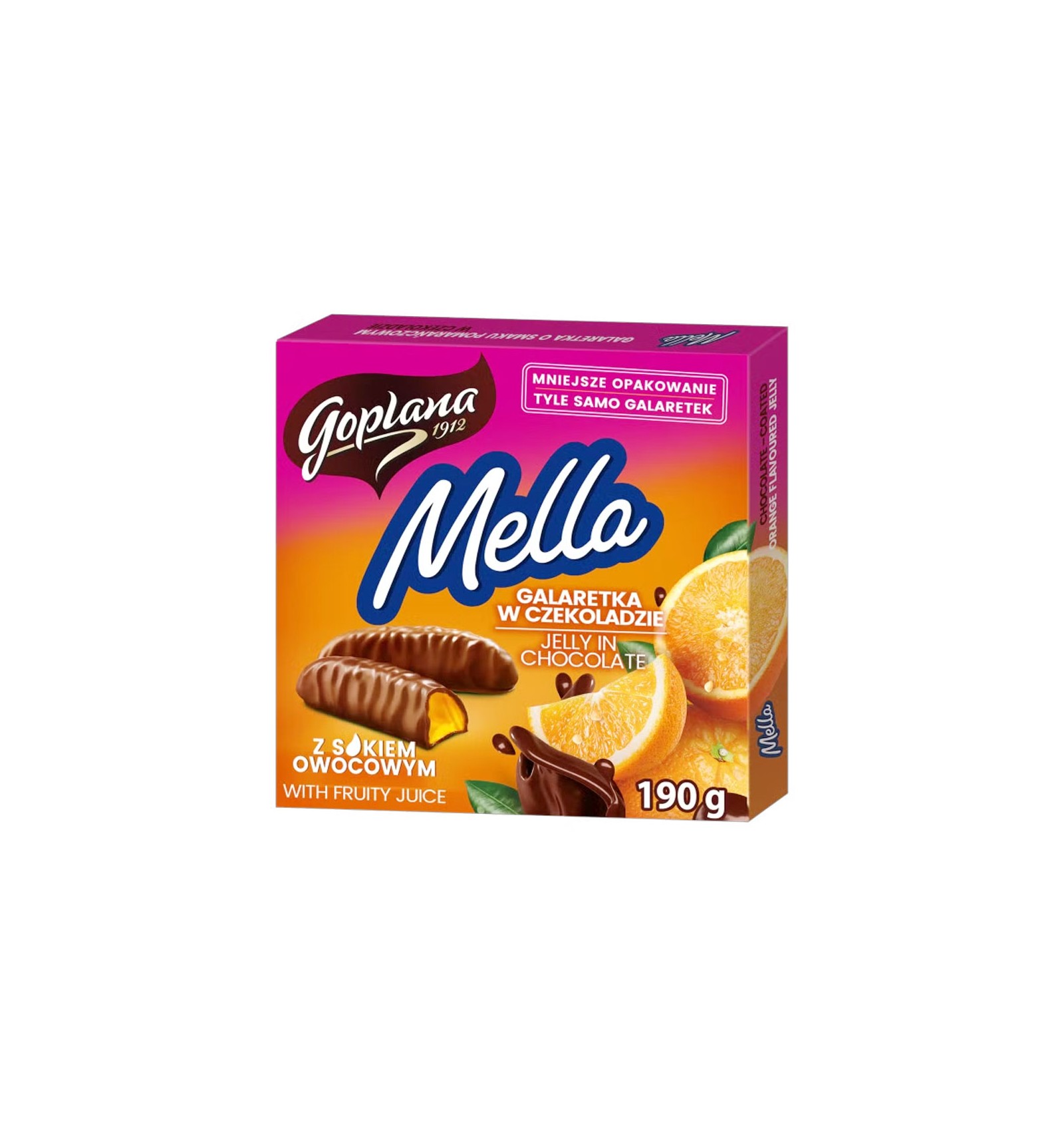 Ingredientes: azúcar, jarabe de glucosa, chocolate 19% (azúcar, pasta de cacao, manteca de cacao, grasas vegetales (palma, karité) en proporciones variables, cacao en polvo con bajo contenido de grasa, emulgentes (lecitina de SOJA, polirricinoleato de poliglicerol), grasa anhidra de LECHE, aroma), agua, zumo de naranja a partir de concentrado 6%, humectante (sorbitol), regulador de acidez (ácido cítrico), agente gelificante (pectinas), estabilizante (citrato de sodio), aroma. Puede contener cacahuetes, frutos secos y gluten.