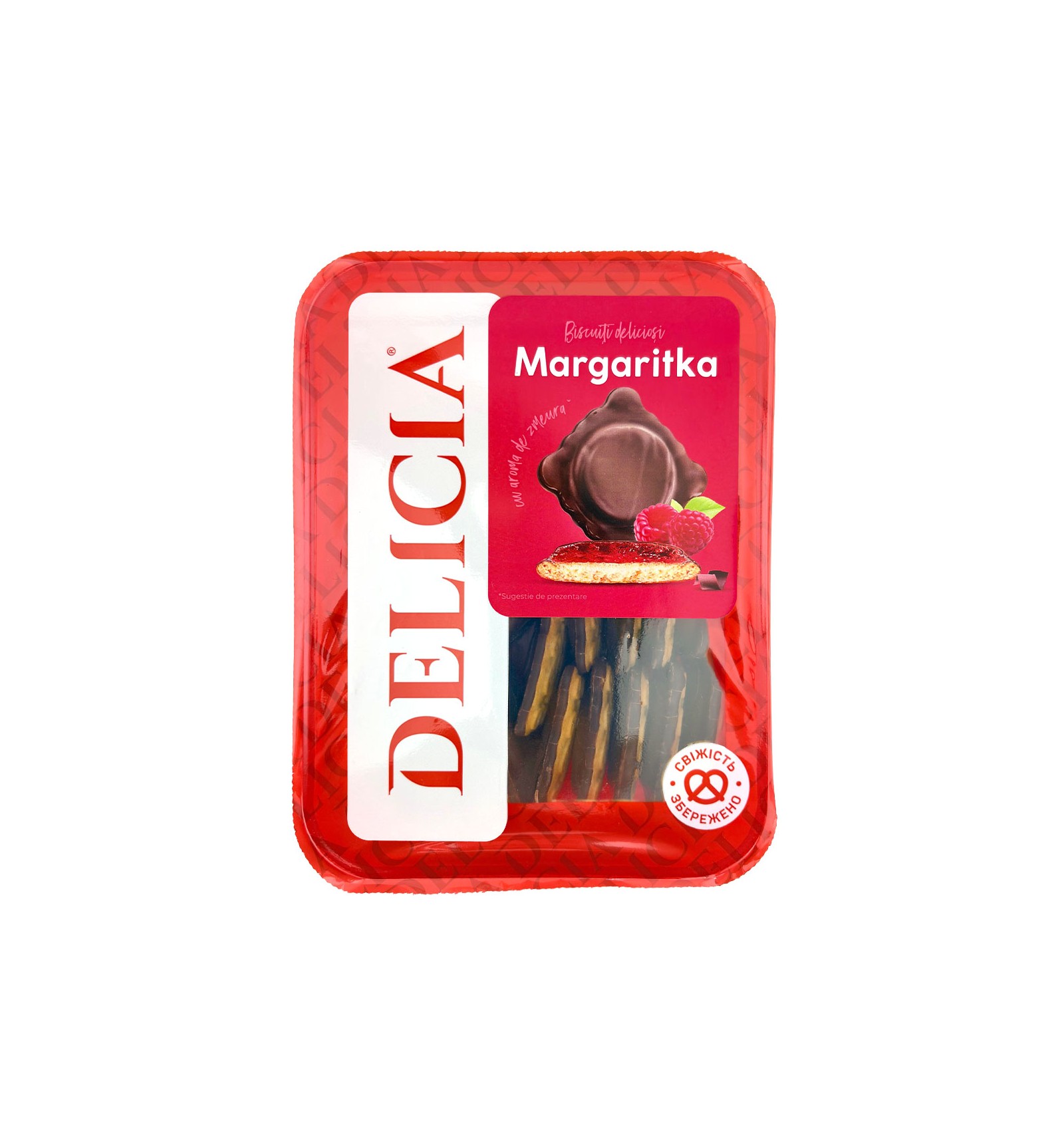 Ingredientes: 40% relleno de gelatina con aroma de frambuesa (azúcar, melaza, agente espesante E440, 1% jugo concentrado de frambuesa, corrector de acidez: E330, E325, colorante E163, aroma), harina de trigo, 13% cobertura de confitería marrón (azúcar en polvo, grasas vegetales (estearina de palma totalmente hidrogenada), 9% cacao en polvo, emulsionante: lecitina de soja, E476, E492, aromas, antioxidante E306, sal), azúcar, grasas vegetales (aceite de palma no hidrogenado), jarabe en polvo desnatada, agente de aflojamiento E500, aroma, sal, colorante beta-caroteno. Puede contener trazas de cacahuetes, sésamo, huevos.