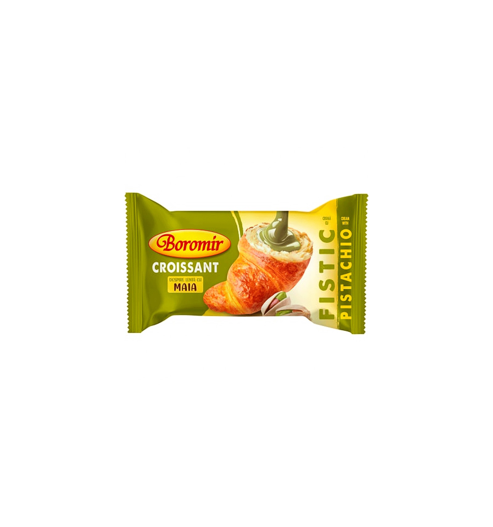Ingrediente: Crema de pistacho 32% (jarabe de glucosa, agua, azúcar, aceite vegetal de palma, pasta de pistacho 5%, leche en polvo entera, agentes espesantes: almidón modificado de patata, pectina, colorantes: carbonato de calcio, complejos de cobre de clorofilas y clorofilinas, sal yodada, emulgentes: mono y diglicéridos de ácidos grasos, conservante: sorbato de potasio), harina de TRIGO blanca, aceites vegetales (palma, girasol, colza), masa madre/levadura natural 13% (harina de TRIGO, agua), HUEVOS, azúcar, jarabe de glucosa, agua, emulgentes: mono y diglicéridos de ácidos grasos, ésteres poliglicéricos de ácidos grasos y lecitina de SOJA, leche en polvo entera, miel, mantequilla, levadura, sal yodada, harina de malta de TRIGO, aromatizantes, acidificante: ácido cítrico. Producto puede contener trazas de: otros frutos de cáscara dura, MOSTAZA.