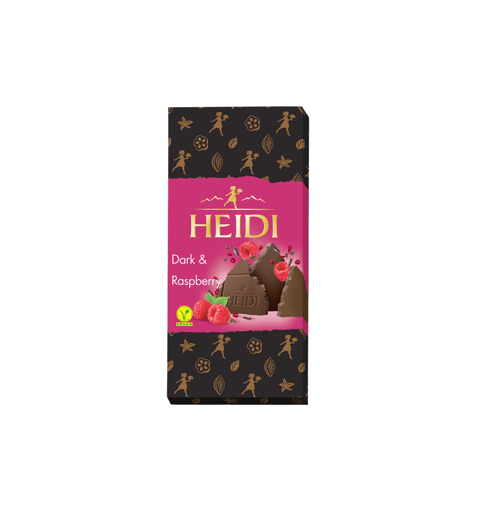 Ingredientes: azúcar, pasta de cacao, manteca de cacao, frambuesa liofilizada en gránulos 1%, emulgente: lecitinas (contiene SOJA); aromas. Materia seca de cacao en el chocolate negro: mínimo 48%. PUEDE CONTENER TRAZAS DE FRUTOS SECOS, GLUTEN y LECHE.