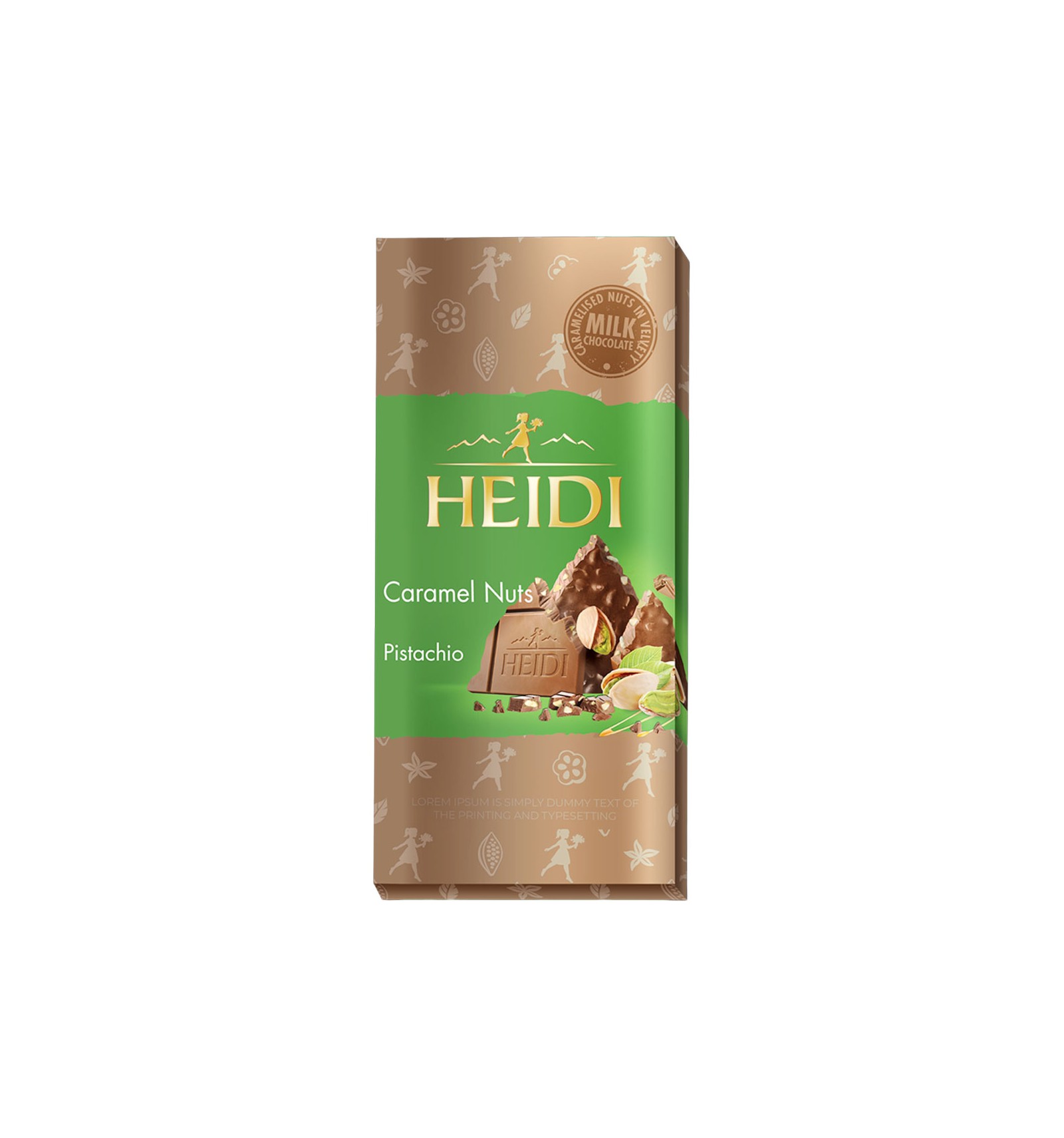 Ingredientes: azúcar, manteca de cacao, LECHE entera en polvo, pasta de cacao, trozos de PISTACHO caramelizado 8% (azúcar, PISTACHO 7%, emulgente: lecitina (SOJA)); grasas de LECHE, suero en polvo (LECHE), LECHE desnatada en polvo, pasta de PISTACHO 0,9% (PISTACHO 0,8%, sal);emulgente: lecitina (SOJA); aromas. Materia seca de cacao en el chocolate con leche: mínimo 27%. PUEDE CONTENER TRAZAS DE OTROS FRUTOS SECOS Y GLUTEN.