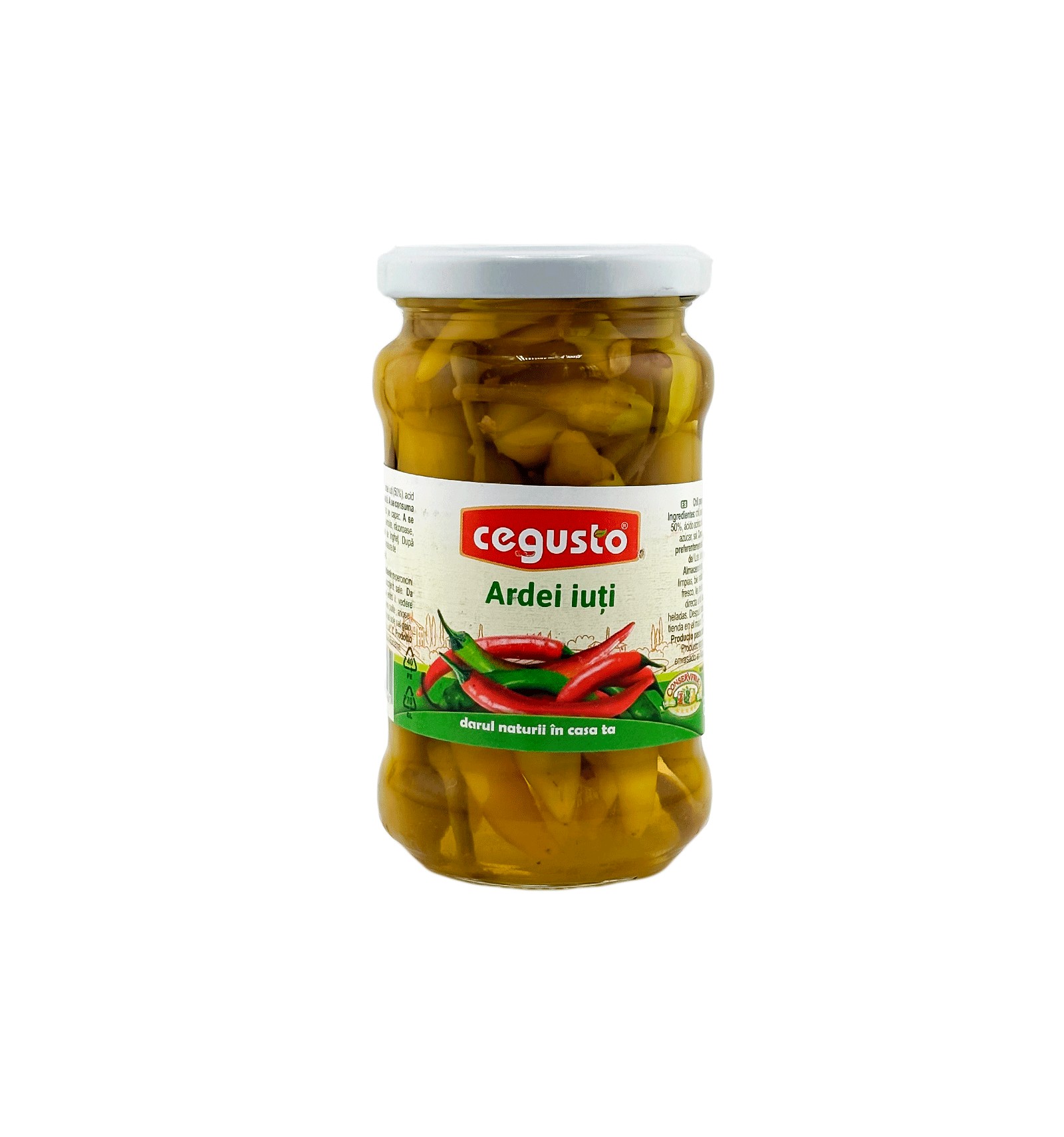 Ingredientes: pimientos picantes 50%, ácido acético diluido, azúcar, sal no yodada.