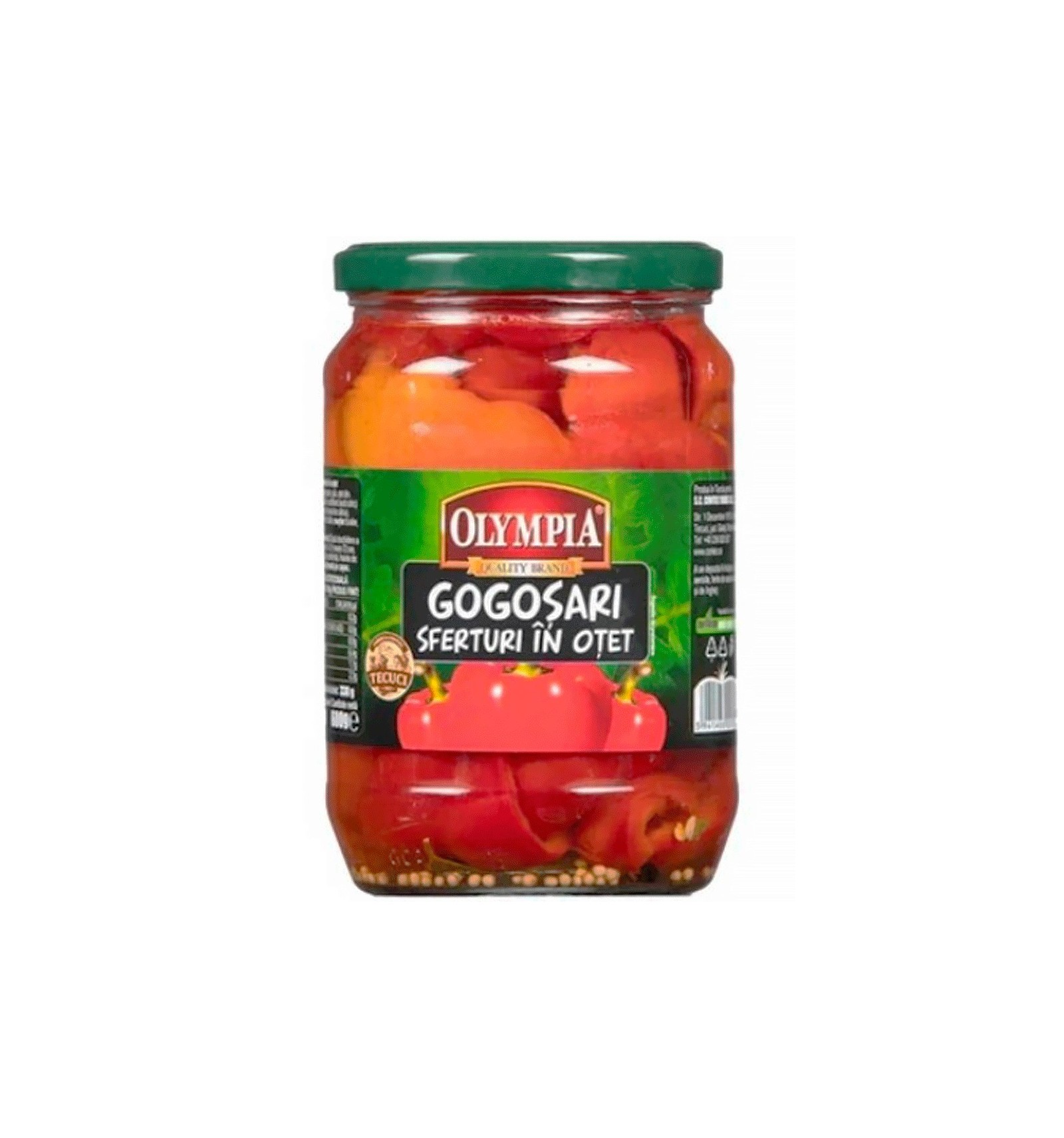 Ingredientes: pimientos, agua, vinagre de vino, sal, acidulante (ácido cítrico), agente de endurecimiento (cloruro de calcio), especias (semillas de mostaza).