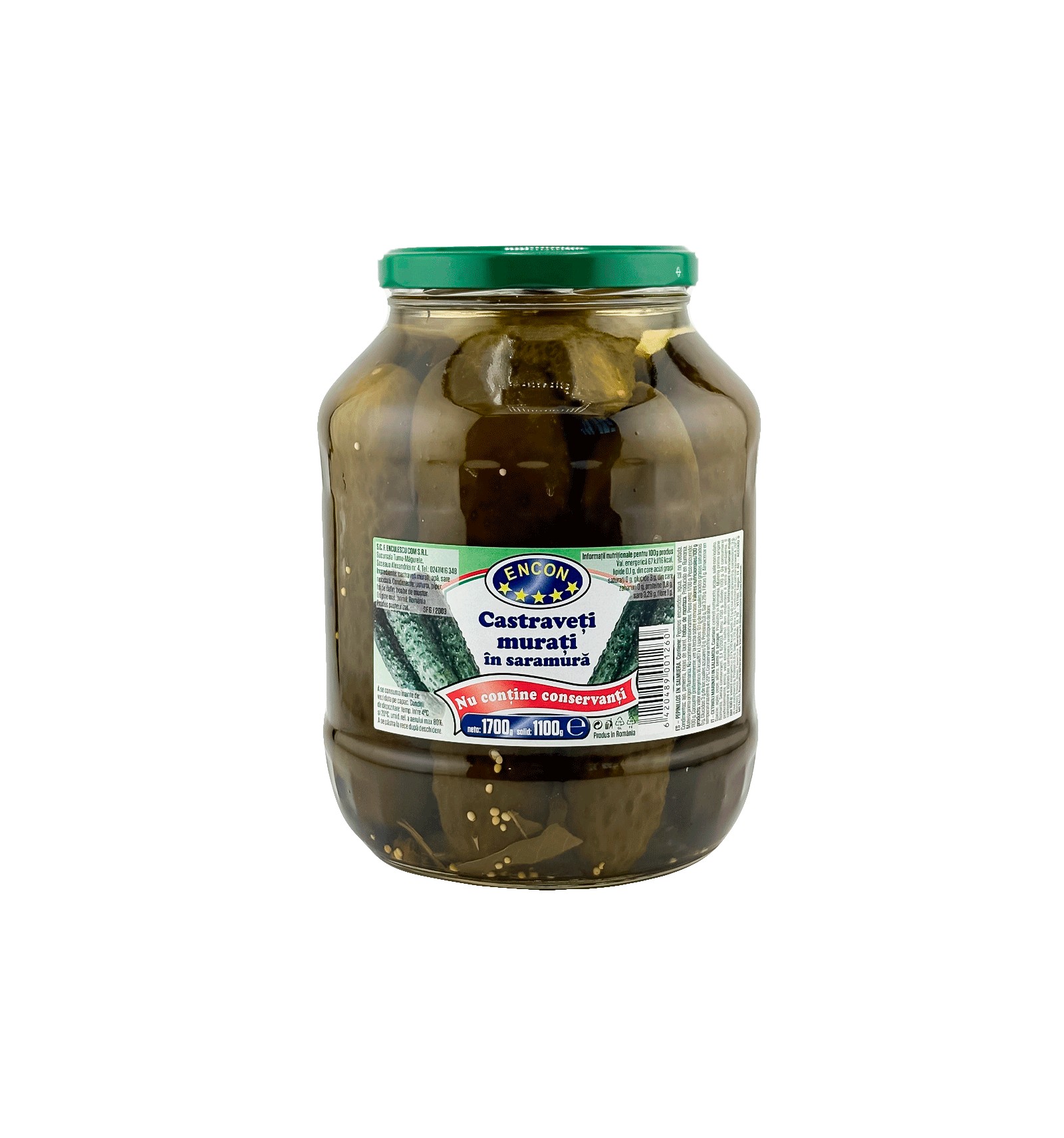 Ingredientes: pepinos encurtidos, agua, sal no yodada, condimientos: ajo, pimienta, hojas de laurel, habas de mostaza.