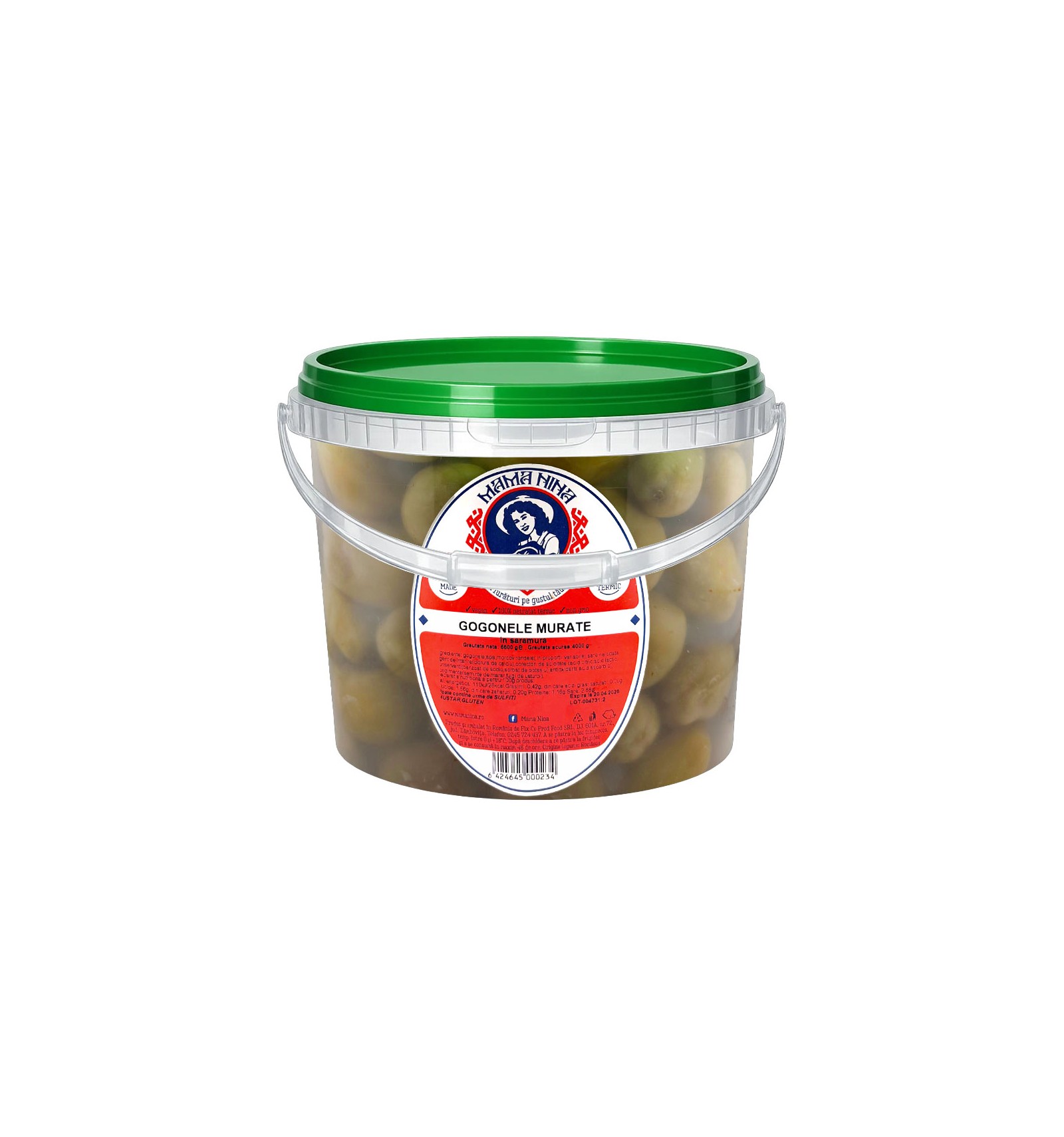Ingredientes: tomates verdes, agua, zanahoria, sal no yodada, agente de endurecimiento (cloruro de calcio), agentes de acidificación (ácido cítrico, ácido láctico), conservantes (benzoato de sodio, sorbato de potasio), especias (semillas de eneldo, copos de ajo). Puede contener trazas de: MOSTAZA, SULFITOS, GLUTEN.