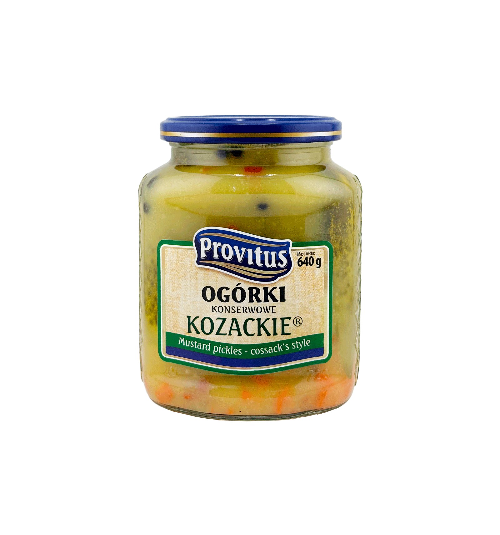 Ingredientes: pepinillos (48 %), agua, azúcar, vinagre de alcohol, MOSTAZA (6 %) (agua, semillas de MOSTAZA, vinagre de alcohol, sal, especias), sal, verduras (pimiento, cebolla, zanahoria), mezcla de especias, colorante: riboflavina.