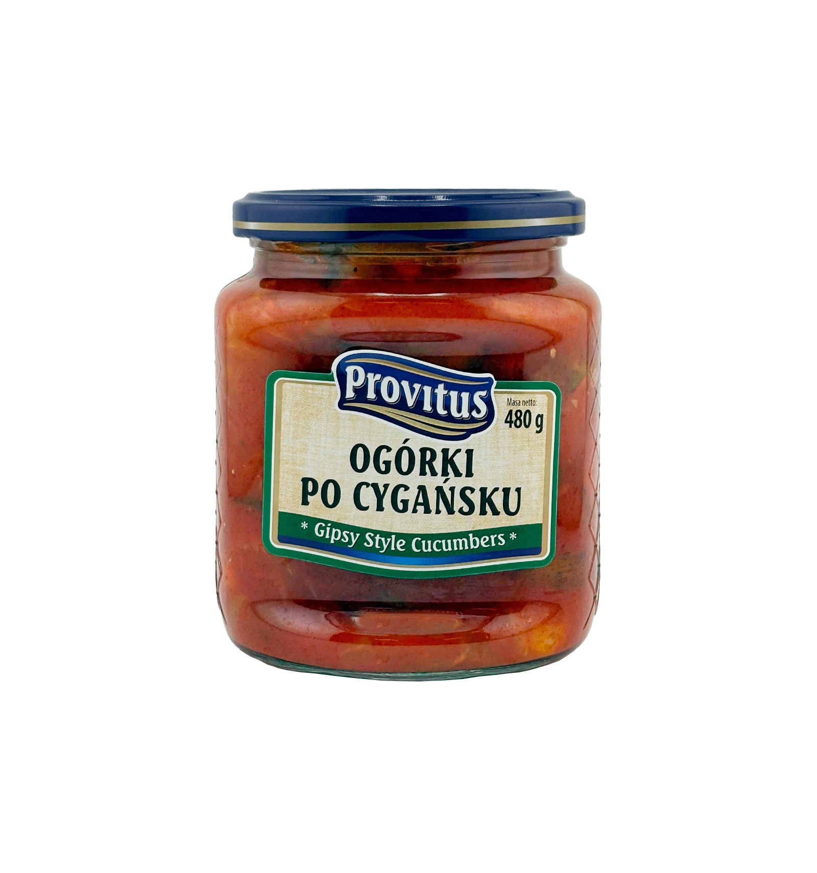Ingredientes: pepinillos en rodajas (56 %), cebolla (18 %), agua, concentrado de tomate (8 %), azúcar, vinagre de alcohol, aceite de colza, sal, especias, condimento aromático.