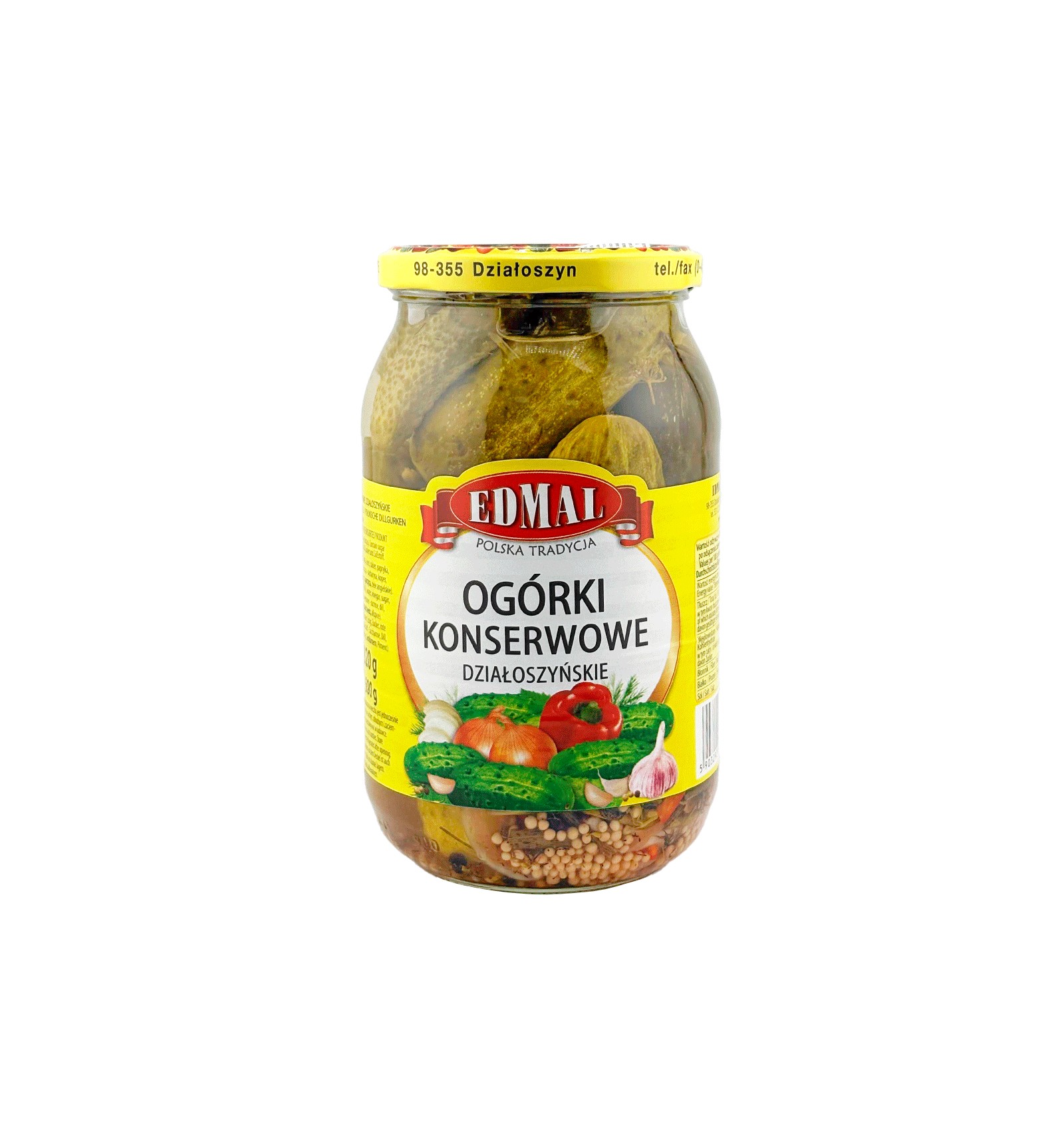 Ingredientes: pepinos (59%), agua, vinagre, azúcar, pimiento rojo, cebolla, sal, edulcorante sacarosa, eneldo, ajo, especias (pimienta, semillas de mostaza, pimienta de Jamaica).