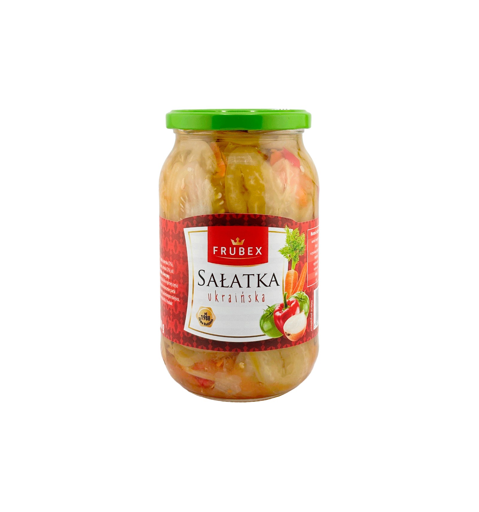 Ingredientes: tomate verde 45%, agua, vinagre, pimentón 7%, zanahoria 6%, azúcar, cebolla 2%, sal.