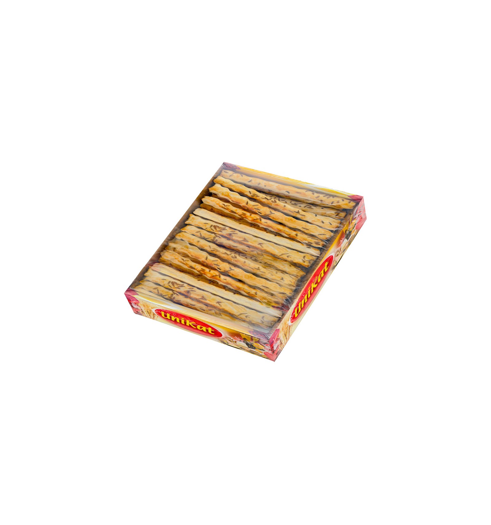 Ingredientes: harina, grasa vegetal, huevo, suero de leche en polvo, almidón, levadura, polvo de hornear, sal, semillas de amapola, sésamo o comino.