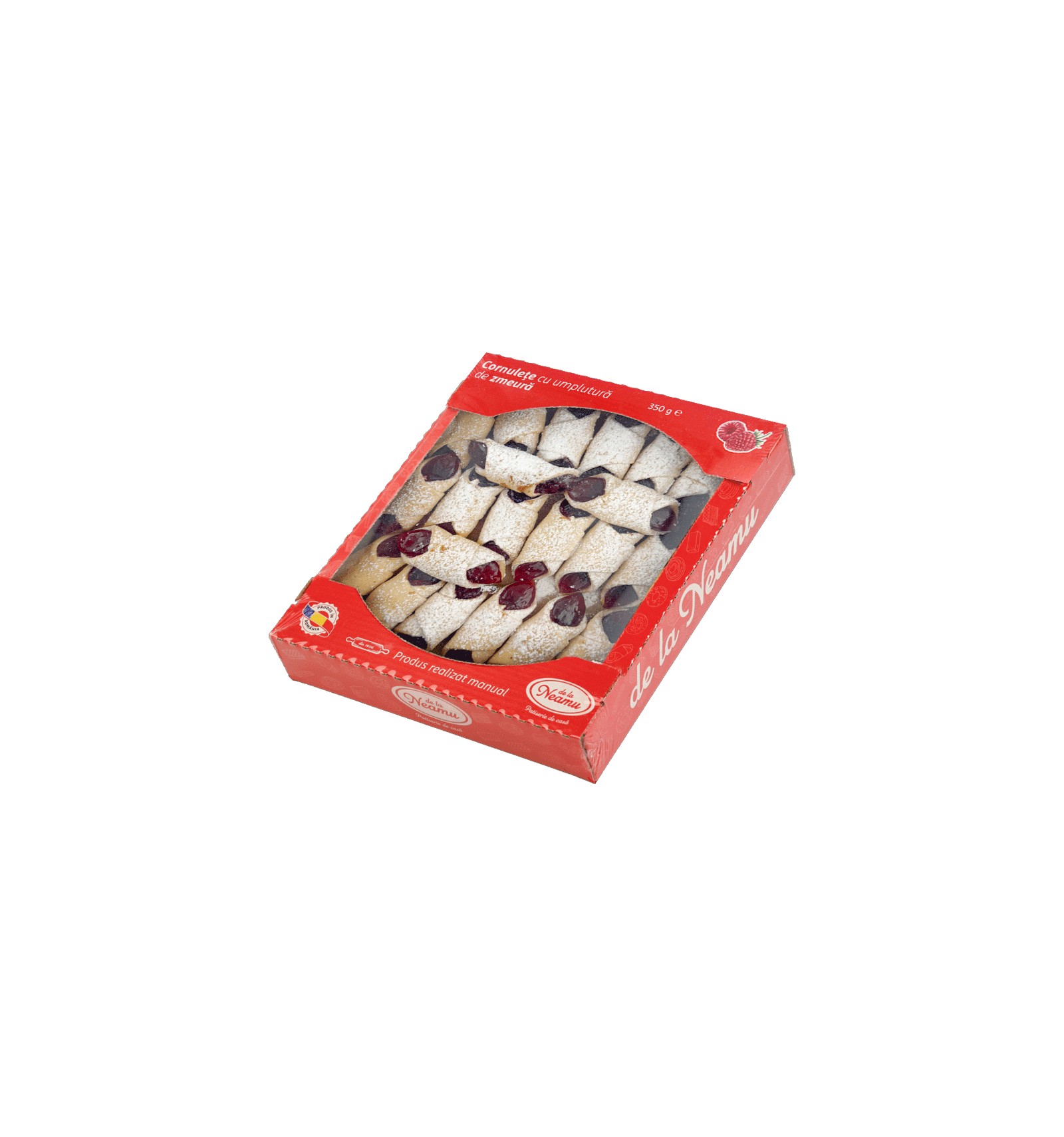 Ingrediente: faina alba de grau, grasime vegetala, gem zmeura, zahar, sare, otet, apa.