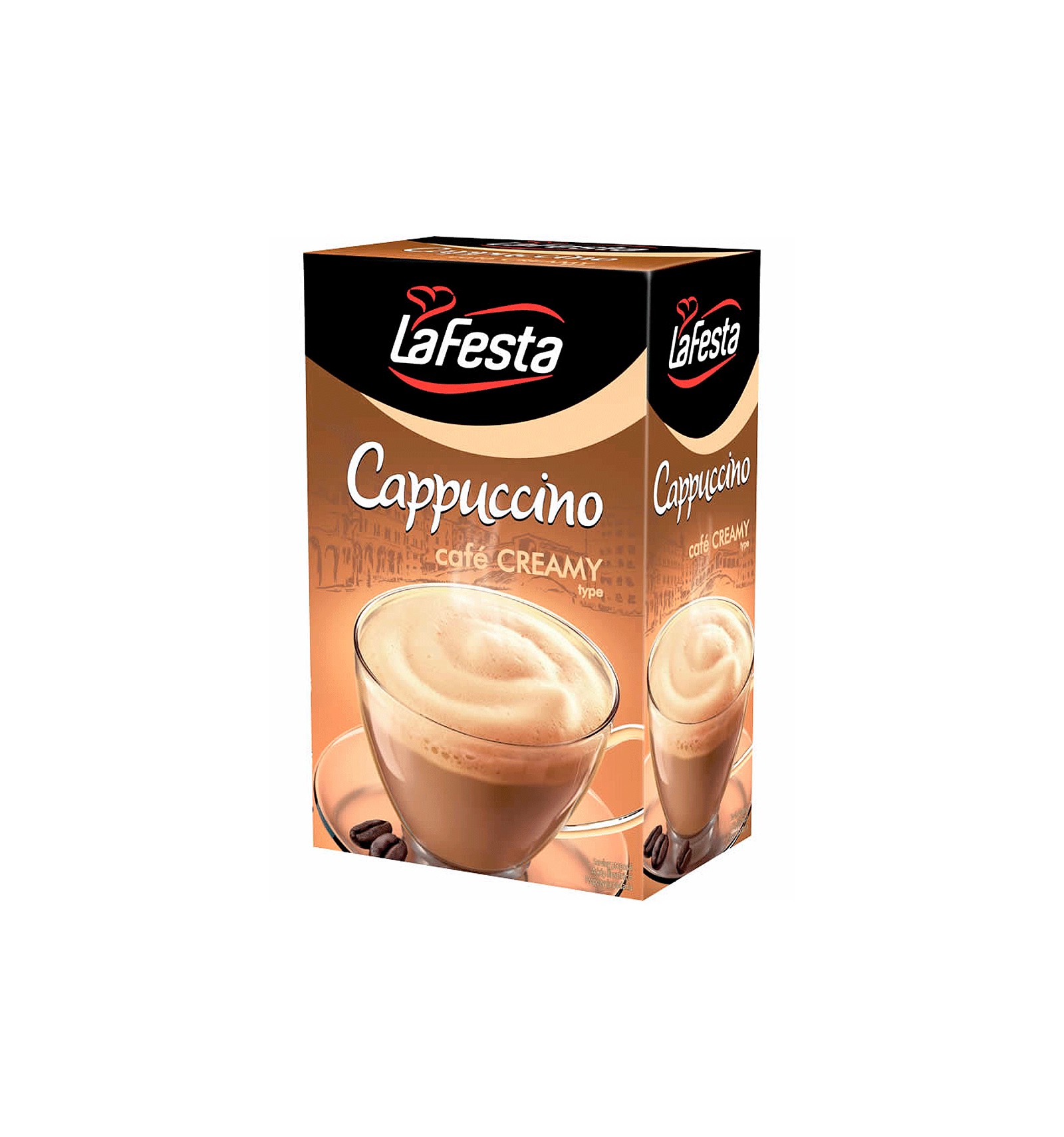 Ingrediente: Zahăr, sirop de glucoză, grăsime vegetală total hidrogenată de cocos, 7.5% cafea solubilă, lapte praf degresat, stabilizator: fosfaţi de potasiu, aromă. Alergeni: lapte și produse derivate (inclusiv lactoză).