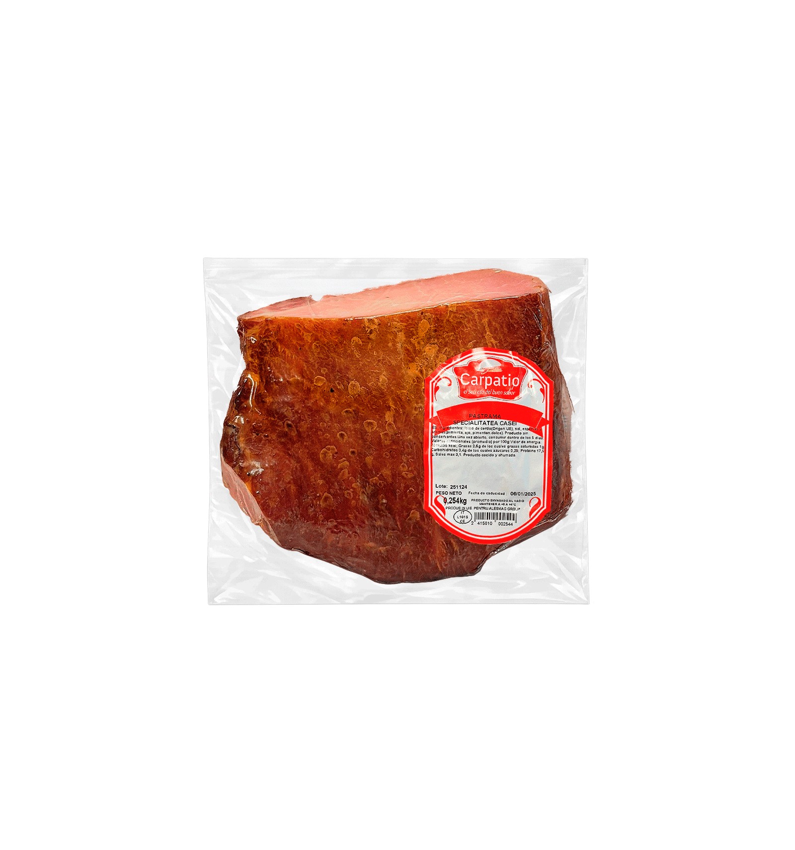 Ingrediente: filet de porc (Origine: UE), sare, condimente și arome (piper, usturoi, boia dulce). Produs fără conservanți.