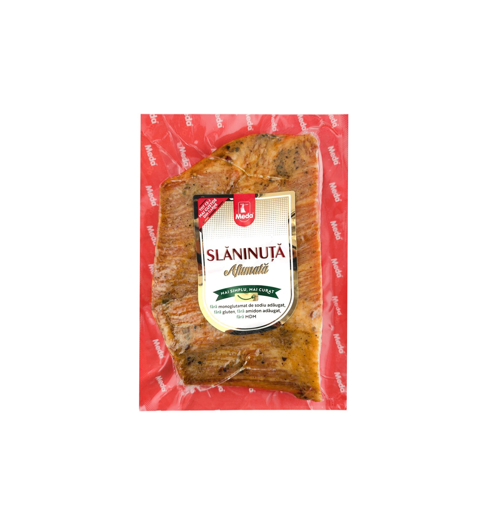 Ingrediente: slanina porc (din UE), sare, dextroza, condimente, antioxidant (ascorbat de sodiu), stabilizator (citrat de sodiu), conservant (nitrit de sodiu). Poate contine urme de soia, muştar, telină, lapte, lactoză.