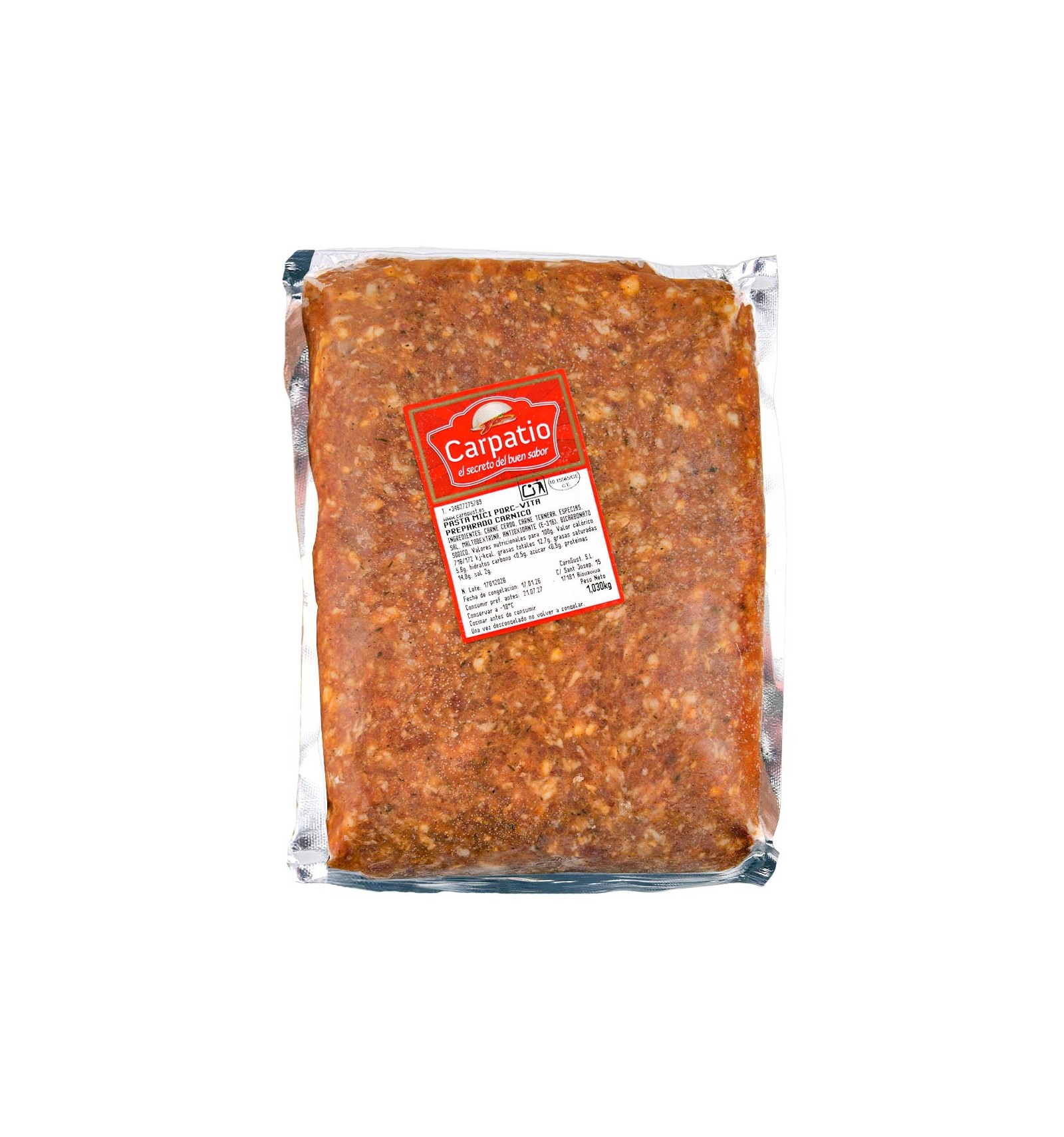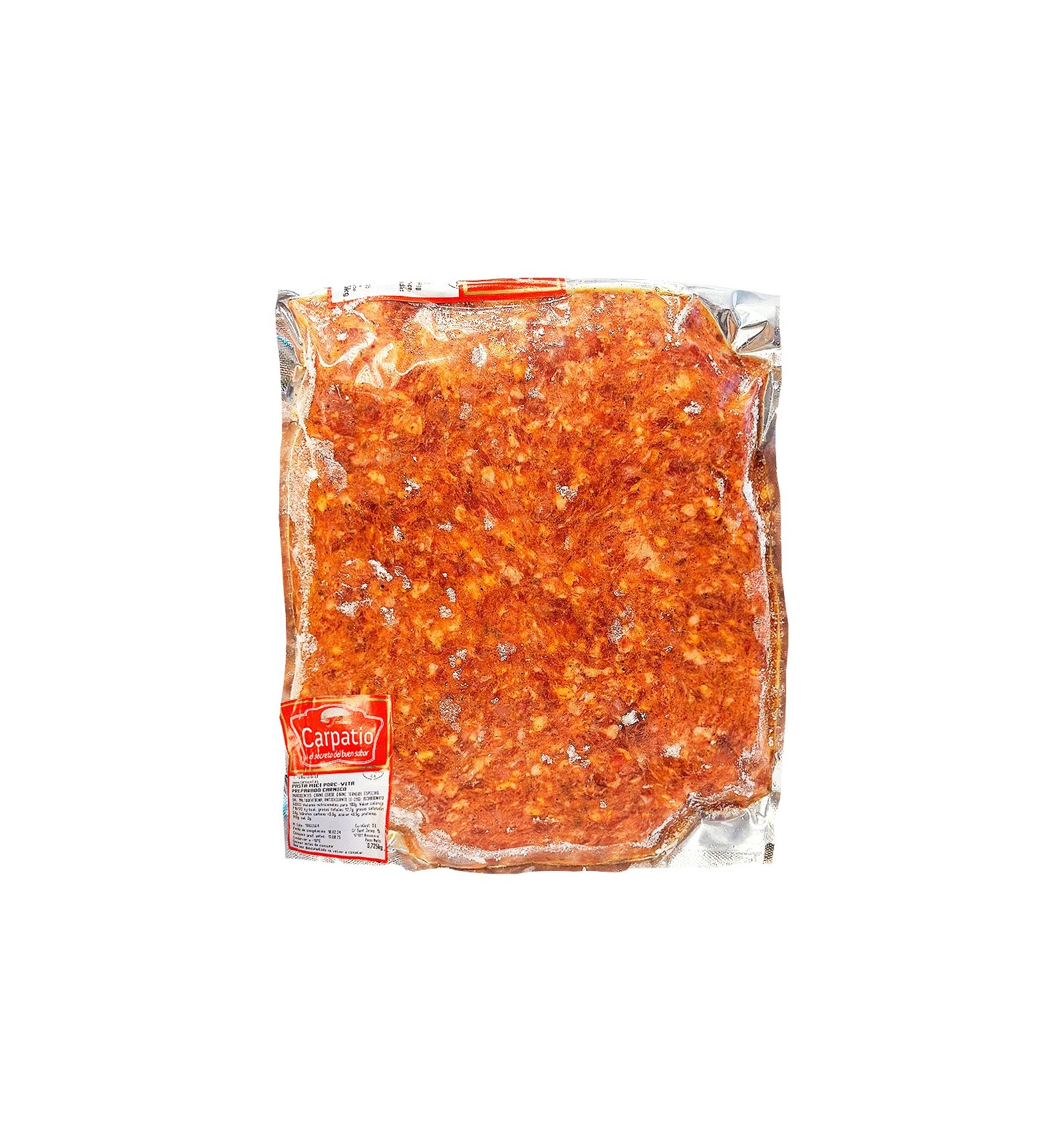 INGREDIENTE: CARNE DE PORC, CARNE DE VITĂ, CONDIMENTE, SARE, MALTODEXTRINĂ, ANTIOXIDANT (E-316), BICARBONAT DE SODIU.
