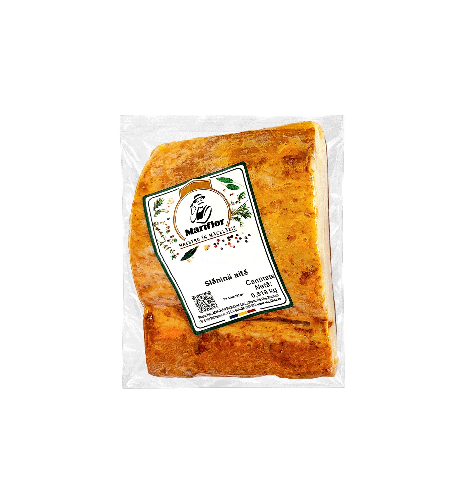 Ingrediente: slănină, sare, usturoi, condimente. Poate conține urme de soia, lapte și derivate lactate incluzând lactoza, muștar, țelină, gluten.