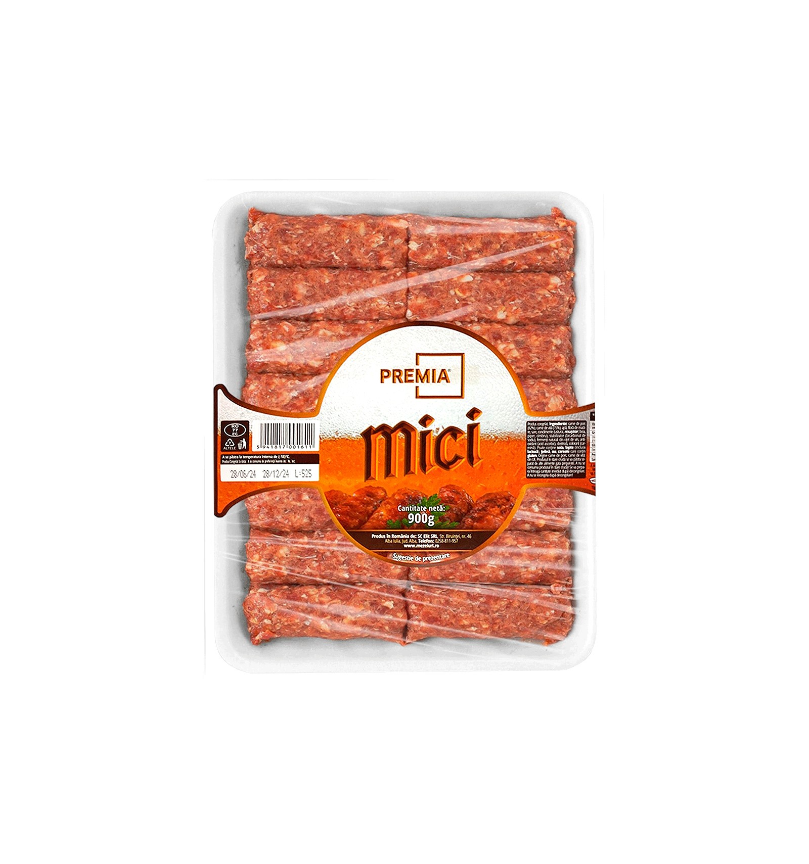 Ingrediente: carne de porc 62%, carne de vita 15%, apa, fibra de mazare, sare, condimente (usturoi, mustar, boia, piper, cimbru), stabilizator (bicarbonat de sodiu), fermenti natural din otet de vin, antioxidant (acid ascorbic), dextroza, colorant (carmina). Poate contine soia, lapte (inclusiv lactoza), telina, ou, cereale care contine gluten.