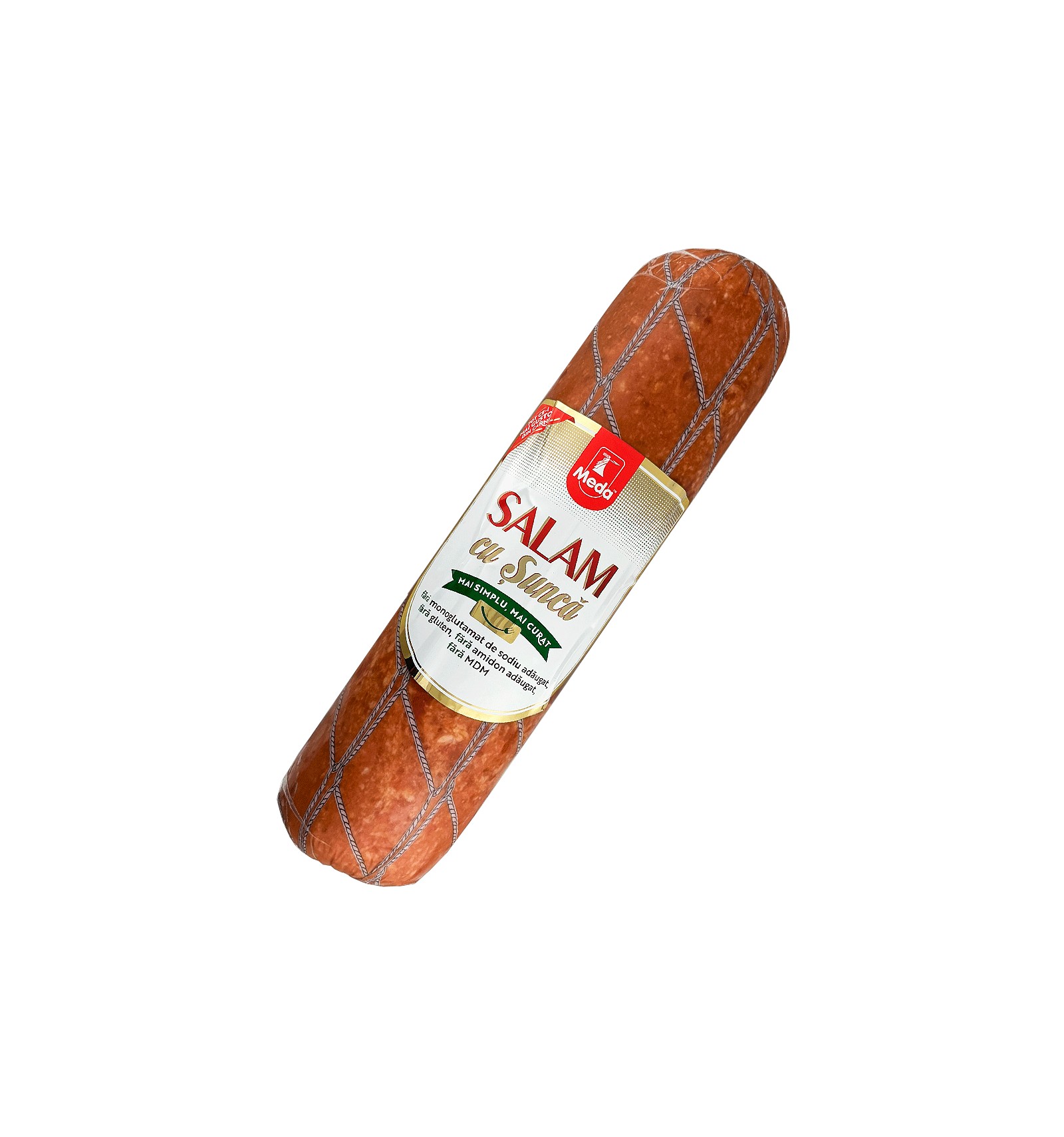 Ingrediente: carne de porc din UE (73%), apă, slănină din UE, amidon modificat, sare, conservant (acetat de sodiu, nitrit de sodiu), proteină animală, fibre vegetale, stabilizatori (trifosfat, carragenan), extracte de condimente, dextroză, potentiator de aromă (glutamat monosodic), antioxidant (ascorbat de sodiu), arome, colorant (carmin). Poate conține urme de soia, muștar, țelină, lapte, lactoză.