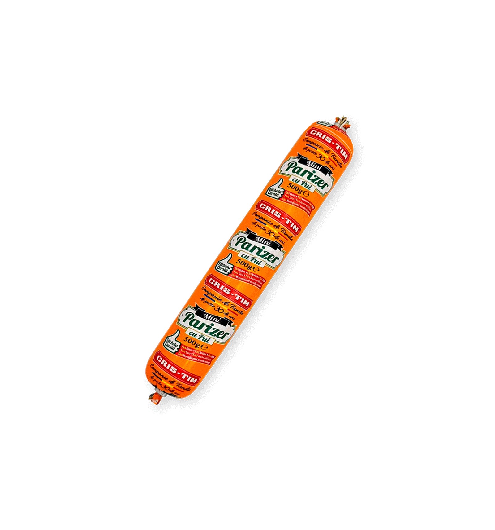 Ingrediente: carne de pui (27%), apă, carne de porc, slănină, piele de pui, șorici, proteină animală de pasăre, proteină din lapte, sare, stabilizatori (polifosfați), condimente (piper, nucșoară, usturoi, boia, coriandru), zahăr, antioxidant (acid ascorbic), fibre vegetale, colorant (carmine), conservant (nitrit de sodiu). Produsul poate conține urme de: țelină, muștar, lactoză.