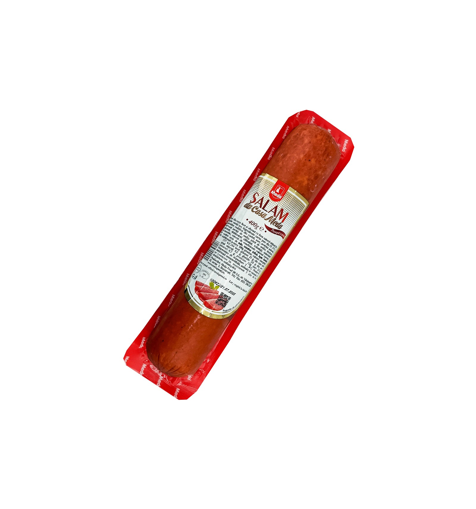 Ingrediente: Carne de porc din UE (78%), apă, amidon de cartof modificat, sare, proteină animală, conservant (acetat de sodiu, nitrit de sodiu), dextroză, condimente, stabilizatori (difosfați, trifosfați), antioxidanți (acid ascorbic), extracte de condimente, colorant (carmin). Poate conține urme de soia, muștar, țelină, lapte, lactoză.