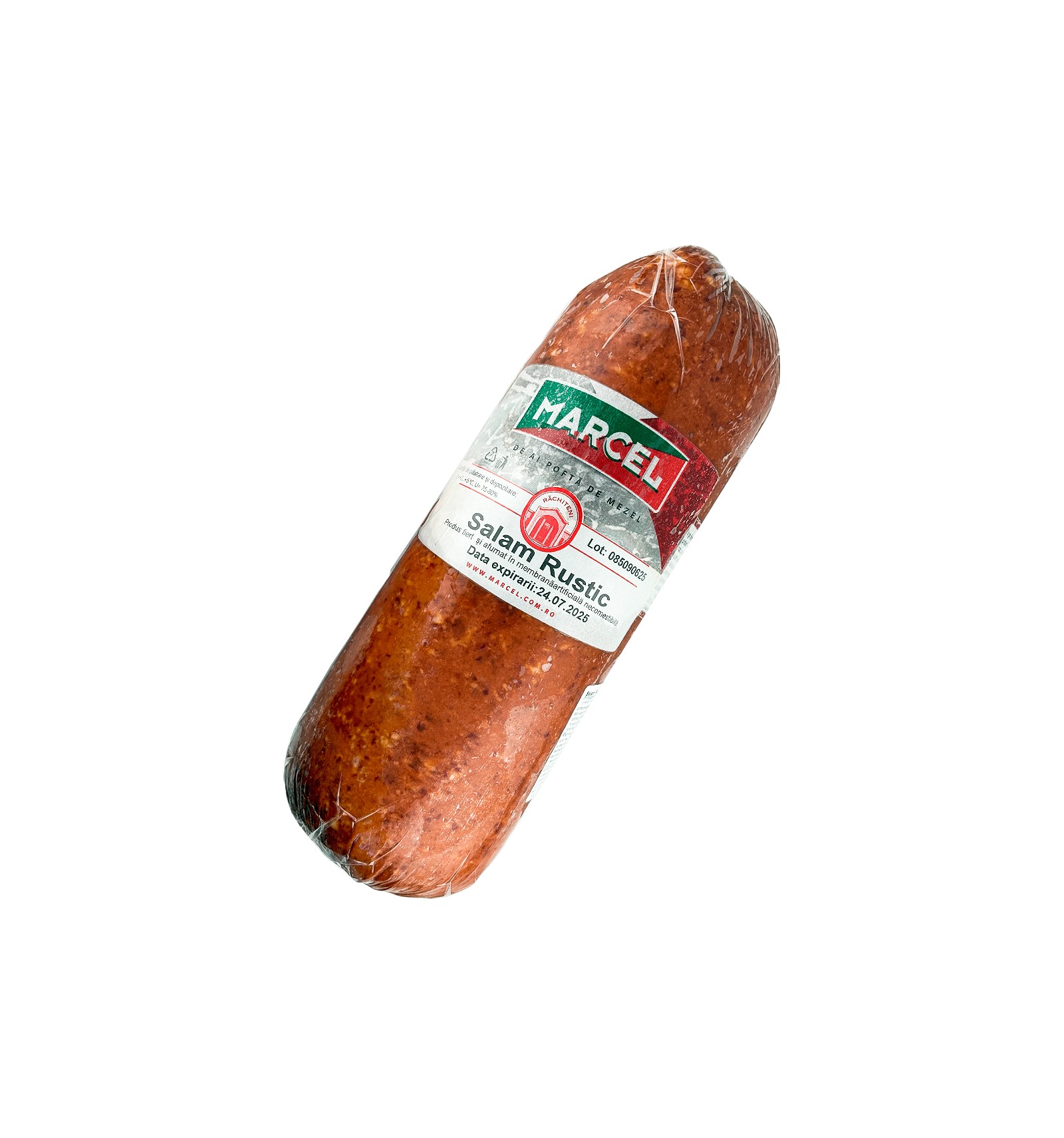 Ingrediente: carne de porc - 75% (origine UE), sare, proteină din LAPTE, proteină vegetală din SOIA, condimente (piper, usturoi, coriandru, chimion), stabilizatori (polifosfat de sodiu, dextroză, acidifiant (glucono-delta-lactonă), aromă, antioxidant (ascorbat de sodiu), potențiator de aromă (monoglutamat de sodiu), colorant (carmin), agent conservant (nitrit de sodiu). Poate contine urme de mustar, gluten.