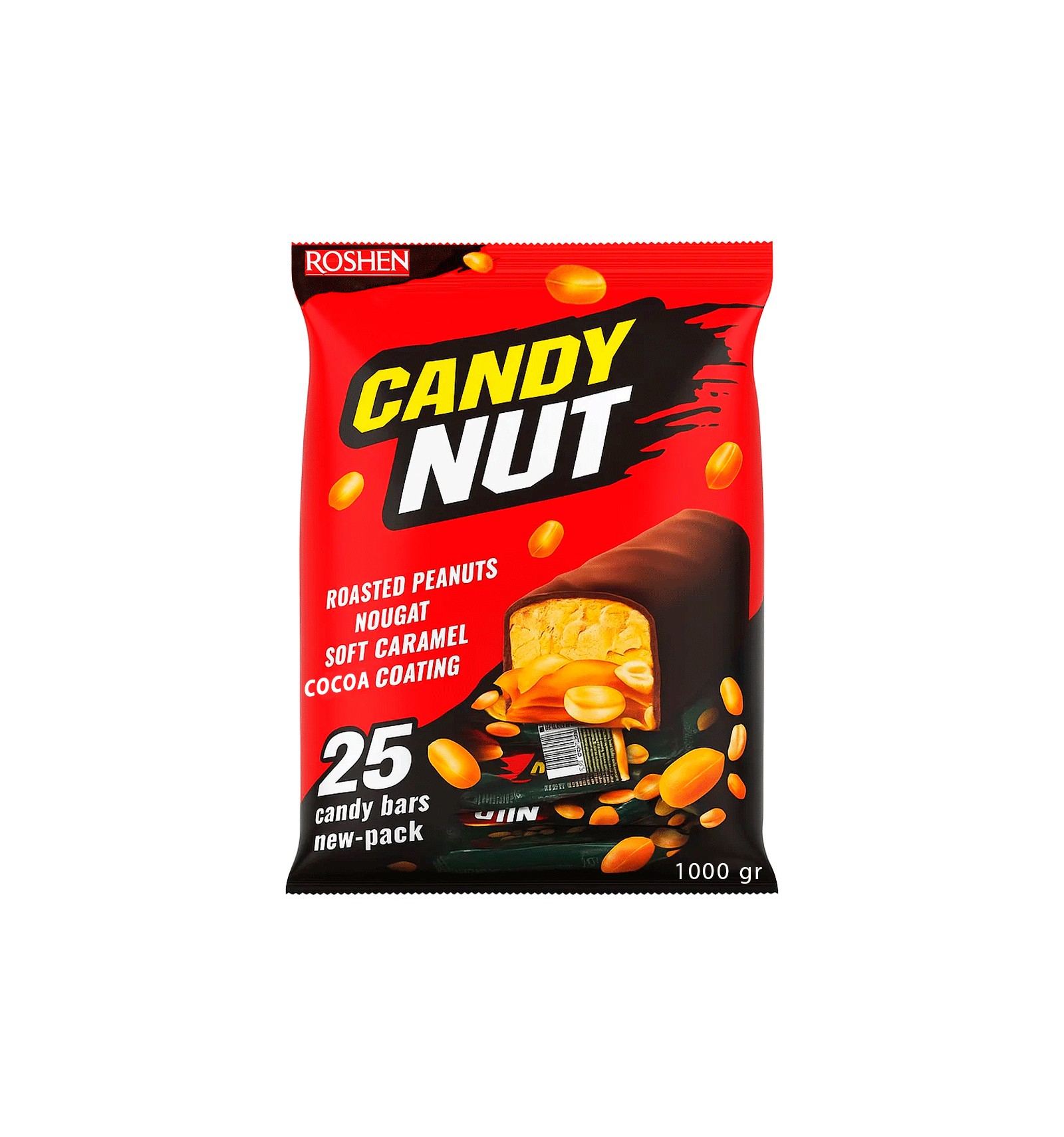 Ingrediente: Sirop, zahăr, alune întregi prăjite 17%, produs lactat condensat [lapte condensat degresat, zahăr, înlocuitor de grăsime din lapte (ulei de palmier nehidrogenat), lactoză], grăsimi vegetale (ulei de palmier nehidrogenat, ulei de palmier complet hidrogenat), zer de lapte suedez, sirop de sorbitol cu rol de reținere a apei, pudră de cacao cu conținut redus de grăsime 9,5%, albuș de ou, lapte degresat praf, sare, emulgator: lecitină din soia, arome. Poate conține gluten (grâu), migdale, alune de pădure, semințe de susan.