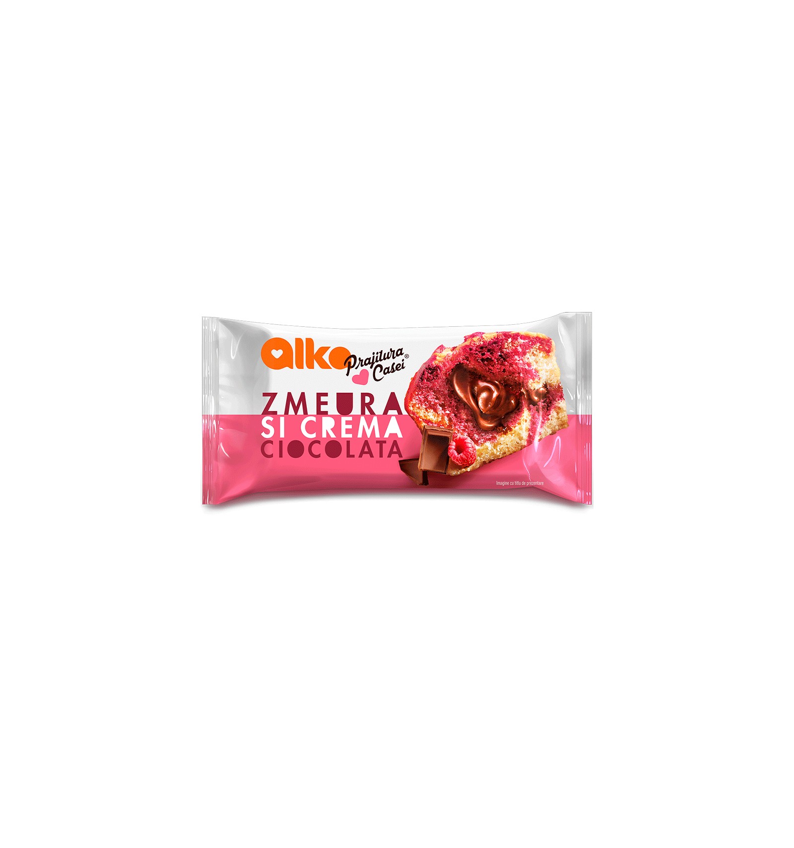 Ingrediente: Făină albă de GRÂU, zahăr, grăsime vegetală (palmier), cremă ciocolată 14.5% [sirop de glucoză, zahăr, apă, grăsime vegetală (palmier), ciocolată neagră 4%( masă de cacao, zahăr, cacao pudră, emulsifiant: lecitină de SOIA), cacao pudră, agent de gelificare: pectină; agent de îngroșare: amidon modificat de porumb; extract de cacao, conservant: sorbat de potasiu; sare, arome], apă, praf de OU, sirop de glucoză, agenți de umezire: glicerol, sorbitol; amidon de GRÂU, colorant: extract natural de sfeclă, agenți de afânare: difosfat disodic, bicarbonat de sodiu; emulsifianti: esteri mono, di și poligliceridici ai acizilor grași; agenți de îngroșare: amidon modificat de porumb, celuloză, gumă xantan; zmeură deshidratată 0.4% (pudra de zmeură, semințe de zmeură), sare de mare, corector de aciditate: acid citric; conservant: sorbat de potasiu, zahăr invertit, pudră de vanilie deshidratată 0.01%, arome.Poate contine urme de FRUCTE CU COAJĂ LEMNOASĂ, LAPTE (LACTOZĂ).