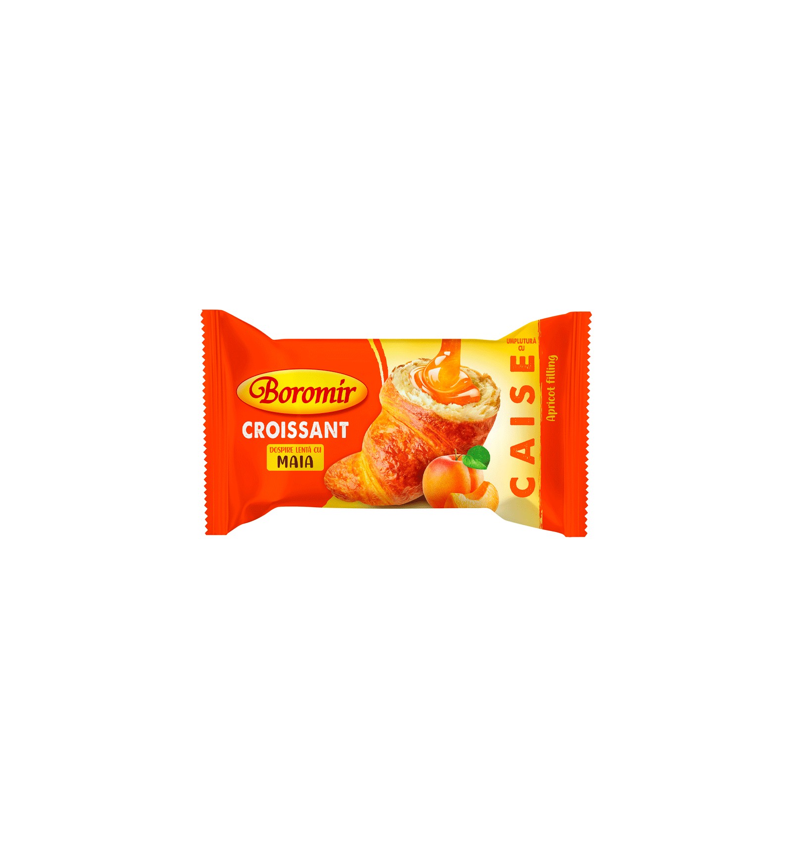 Ingrediente: făină albă de GRÂU, umplutură cu caise 25% (sirop de glucoză-fructoză, piure de caise 35%, zaharoză, arome, agent gelatinizant: pectină, corector de aciditate: acid citric, conservant: sorbat de potasiu), uleiuri vegetale (palmier, floarea-soarelui, rapiţă), maia / drojdie naturală 15 % (făină de GRÂU, apă), OUĂ, zahăr, sirop de glucoză, apă, emulsifianţi: mono și digliceride ale acizilor grași, esteri poliglicerici ai acizilor grași și lecitină de SOIA, LAPTE praf integral, miere, UNT, drojdie, sare iodată, făină din malţ de GRÂU, arome, acidifiant: acid citric. Produsul poate conţine urme de: nuci, alune, muștar.