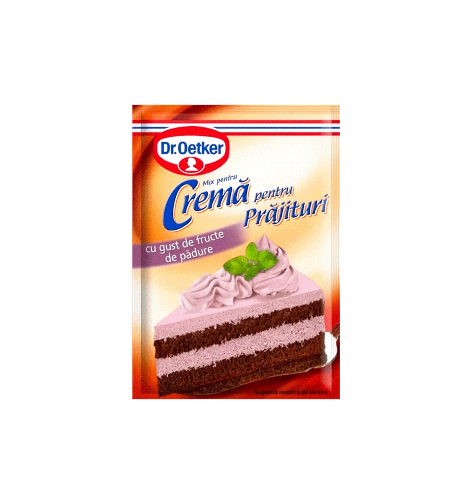 Ingrediente: sirop de glucoză, ulei rafinat din sâmburi de palmier, amidon modificat, emulsifianți (esteri ai acidului acetic cu mono- şi digliceridele acizilor graşi, mono- și digliceride ale acizilor grași), zahăr, gelatină alimentară, acidifiant (acid citric), proteine din LAPTE, aromă, colorant (antocianine). Poate conține: (GLUTEN).