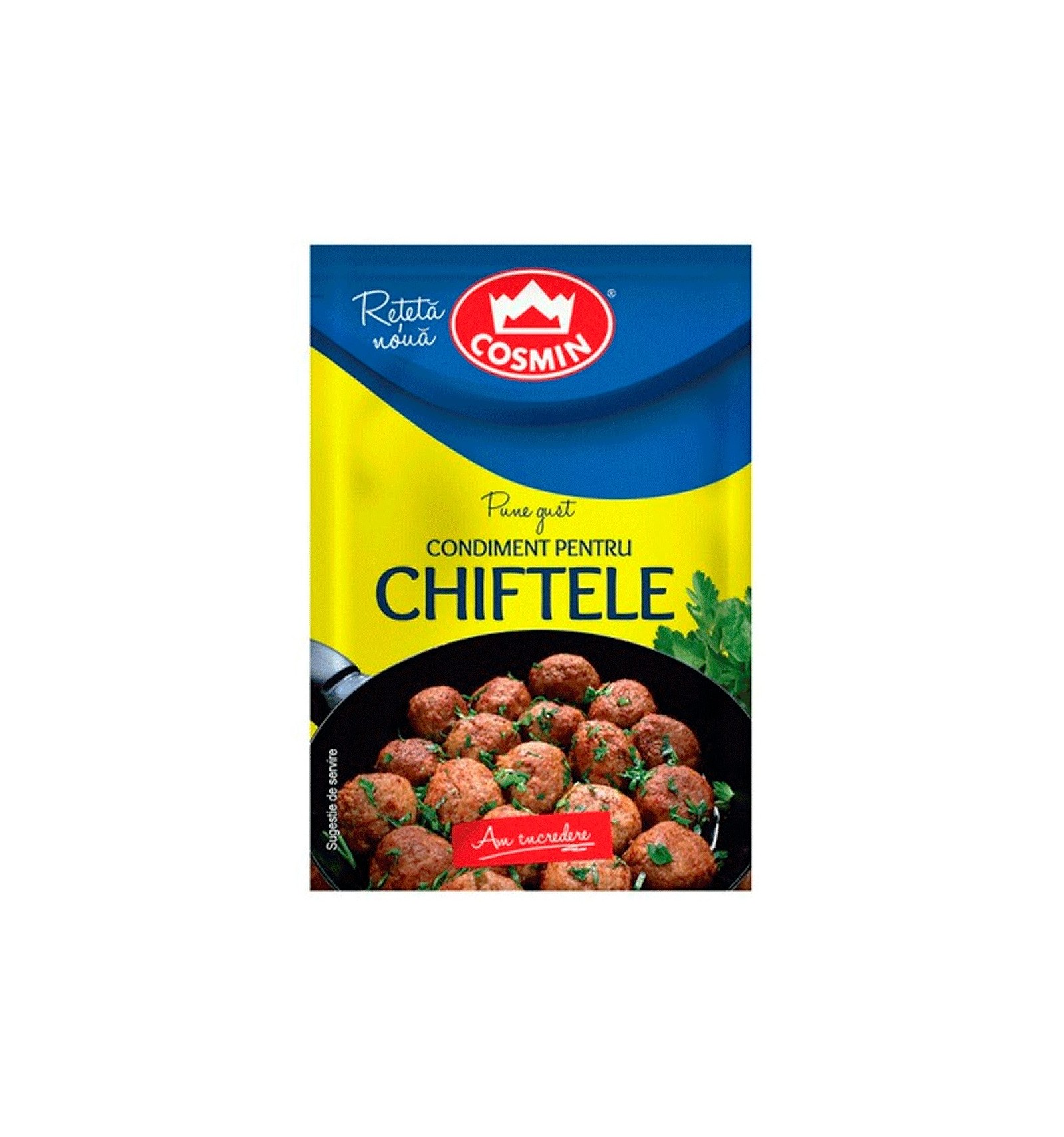Ingrediente: sare 60%, boia dulce, pesmet (faina de GRAU, apa, sare, drojdie), condimente (MUSTAR pudra, boia dulce, piper negru, patrunjel, cimbru, marar, usturoi). Poate contine urme de: oua, soia, lapte, telina, susan.