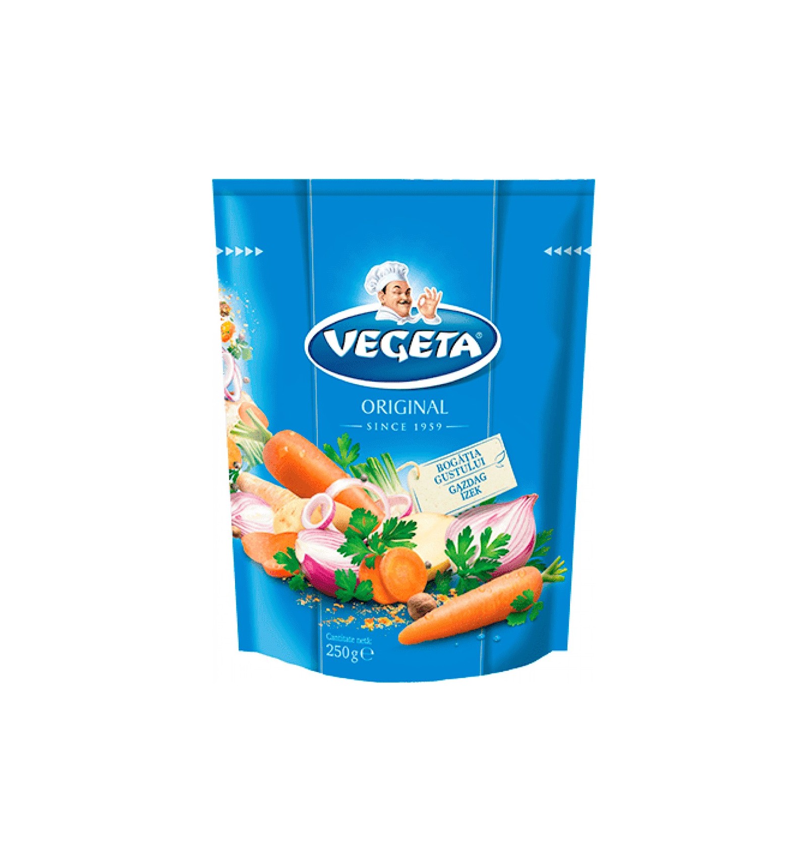 Ingrediente: sare de bucătărie maximum 58%, legume uscate 15,5% (morcov, păstârnac, cartof, ceapă, ţelină, frunze de pătrunjel), potenţiatori de aromă (monoglutamat de sodiu, inozinat disodic), zahăr, condimente, amidon de porumb, colorant (riboflavină).