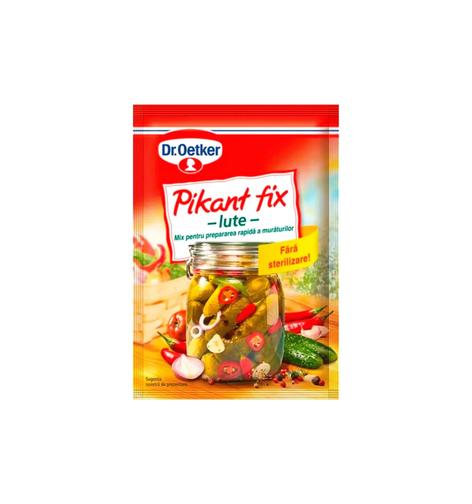 Ingrediente: sare, conservanți (acid benzoic (E 210), benzoat de sodiu (E 211), METABISULFIT de potasiu (E 224)), boabe de MUȘTAR, chilli pudră, coriandru, mărar, piper, foi de dafin