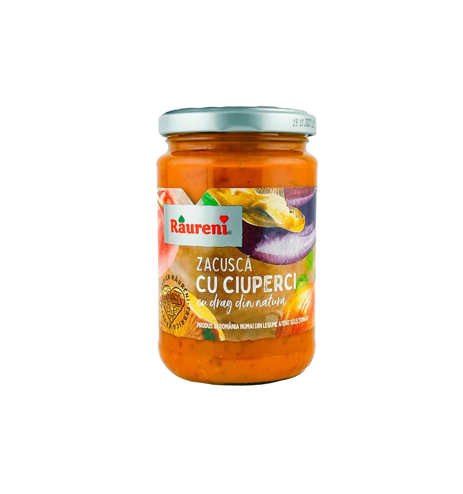 Ingrediente: Vinete coapte, gogoşari, ceapă, tomate, ciuperci, ulei de floarea soarelui, pastă de tomate, zahăr, sare, piper.