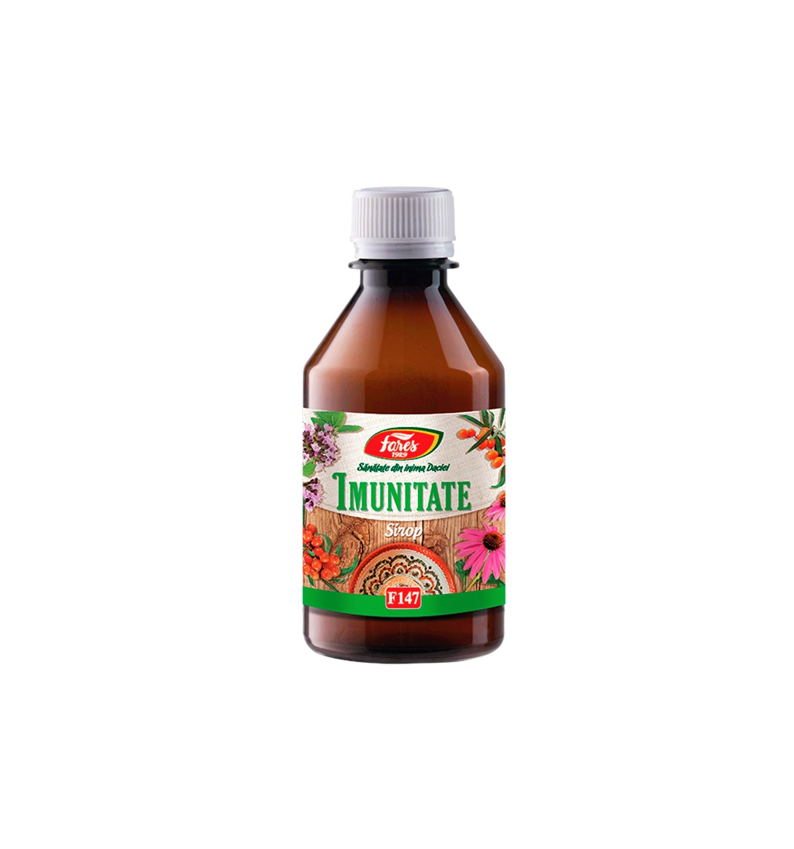 Ingrediente: Zahăr invertit; extract apos de plante: echinacea (Echinaceae herba) 4%, fructe de cătină (Hippophae fructus) 2%, rădăcină de Astragalus membranaceus 2%, şovârv (Origani herba) 1,5%, rădăcină de ginseng (Ginseng radix), lichen de piatră (Lichen Islandicus)] - min. 35% în proporţie variabilă; antioxidant: vitamina C; extract uscat de busuioc sfânt (Ocimum sanctum) standardizat în min. 6 % flavone 0,5%; concentrat de fructe de soc (Sambuci fructus) 0,5%; uleiuri esenţiale de: lămâie (Citri aetheroleum), portocale (Aurantii aetheroleum), eucalipt (Eucalypti aetheroleum); scorţişoară (Cinnamomi aetheroleum) - min. 0,2% în proporţie variabilă.